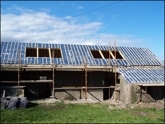 The planning process was lengthy, but successful in the end, and we were able to approach the Wicklow Rural Partnership(WRP) for grant-aid towards restoration and use as tourism development – a self-catering cottage. We had made a submission to the partnership based on a sustainabilty brief with their active support and proposed a building which would be an exemplary conservation on the one hand, with clear energy conservation measures and a concern to ensure that all products and materials should be as far as possible chosen for their green characteristics. The making of a substantial grant by the WRP, who saw the scheme as an exemplary model for sustainable energy as well as for building conservation of buildings at risk of being lost, allowed us to restore, convert and equip the building without compromise.