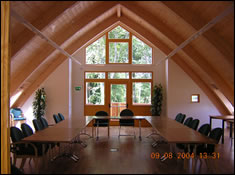 While the existing building was ahead of its time in terms of demonstrating best practice in timber building technology, the new one seeks to build on this experience and to demonstrate best practice in all around sustainable design with the primary building material being timber from sustainable sources and insulation using recycled paper product to levels better than current Building Regulations standards.
