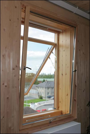Airtightness is crucial and we found that we had hard work trying to get subcontractors to really appreciate that you cannot have an energy efficient building unless it is ‘tight’. The tightness is to do with severe energy loss, but also crucially in terms of vapour management. If you have interstitial vapour trapped within fabric of a timber building of this nature it is a recipe for rampant Serpulius Lacrymans and so on by way of wood feeding biota. So the management of the vapour barrier and the breathing membrane and whether these two skins meet the framing to aperture is crucial. A grave problem in the Irish Construction industry exists in a lack of realisation of the implications of vapour track into the fabric. Once a timber building starts rotting, and there’s unseen propagation of fungi, you have a huge problem on your hands. A caveat here is that you dare not embark on multi-storey timber construction of this kind unless air-tightness and vapour-tightness is fully understood. We need to build on German and Scandinavian know-how here. Griffner Coillte is a potentially promising exemplar. It is a recipe for disaster to continue with some of the ‘wood butchery’ that goes on in Ireland , masquerading as good timber frame.