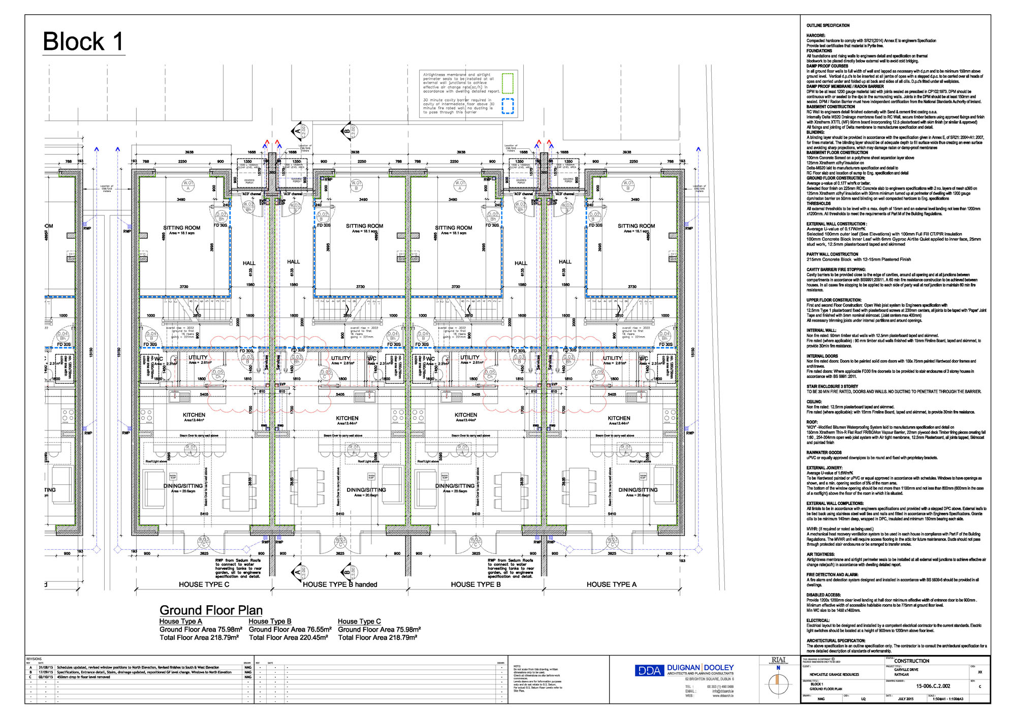 “No one’s building B2 or B1 rated houses any more, but it doesn’t take a huge amount of additional resources to get an A3 rated house,” says Carty. “You build according to the new building regs and you’ll get it. Here we’ve managed to go a step forward and get an A2. At the end of the day, that will save the customer a lot of money over the lifespan of the house.”