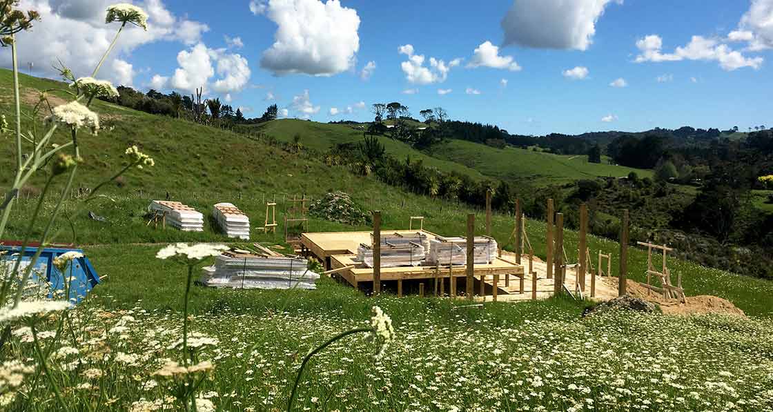 Our search for a plot of land took us about 45 minutes north of Auckland, where we found a site barely within our budget.