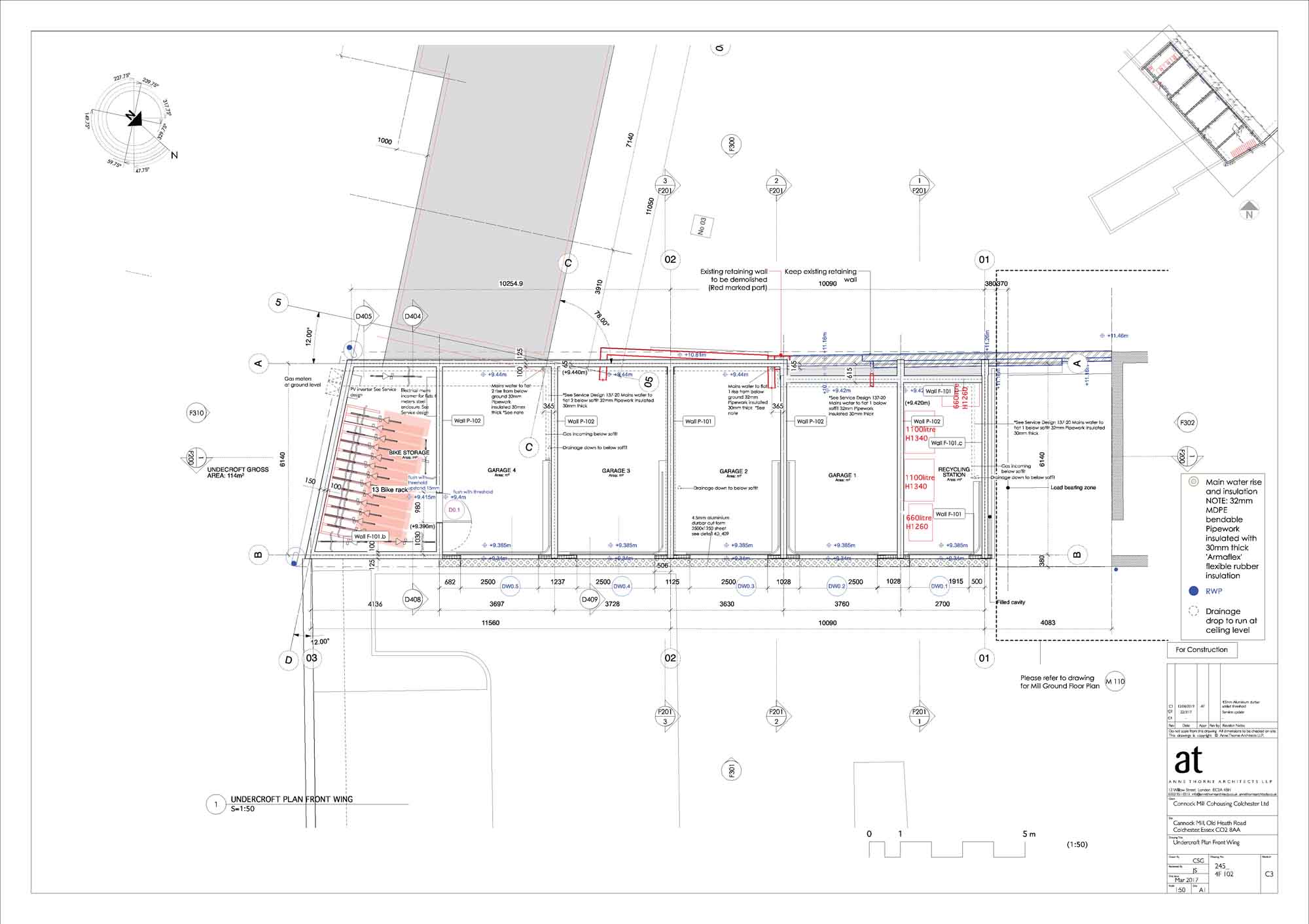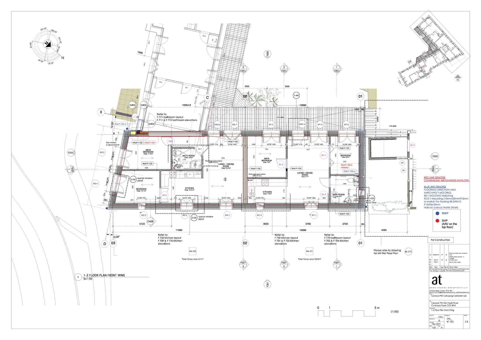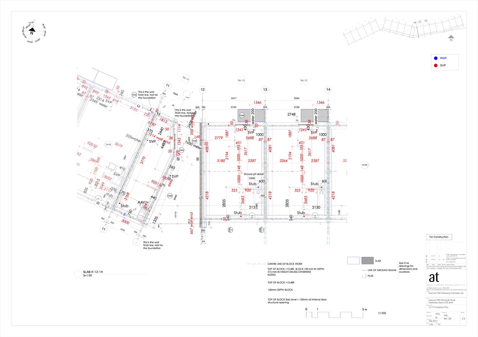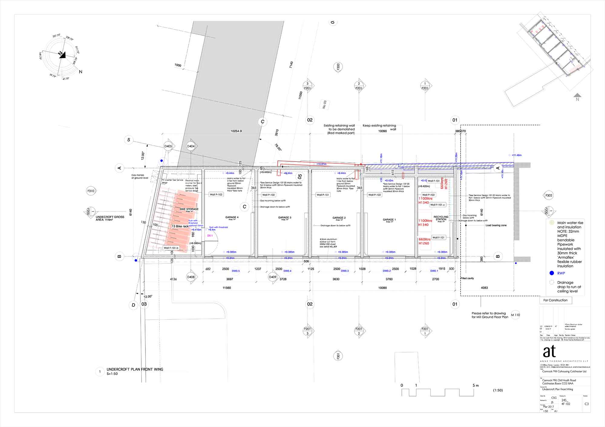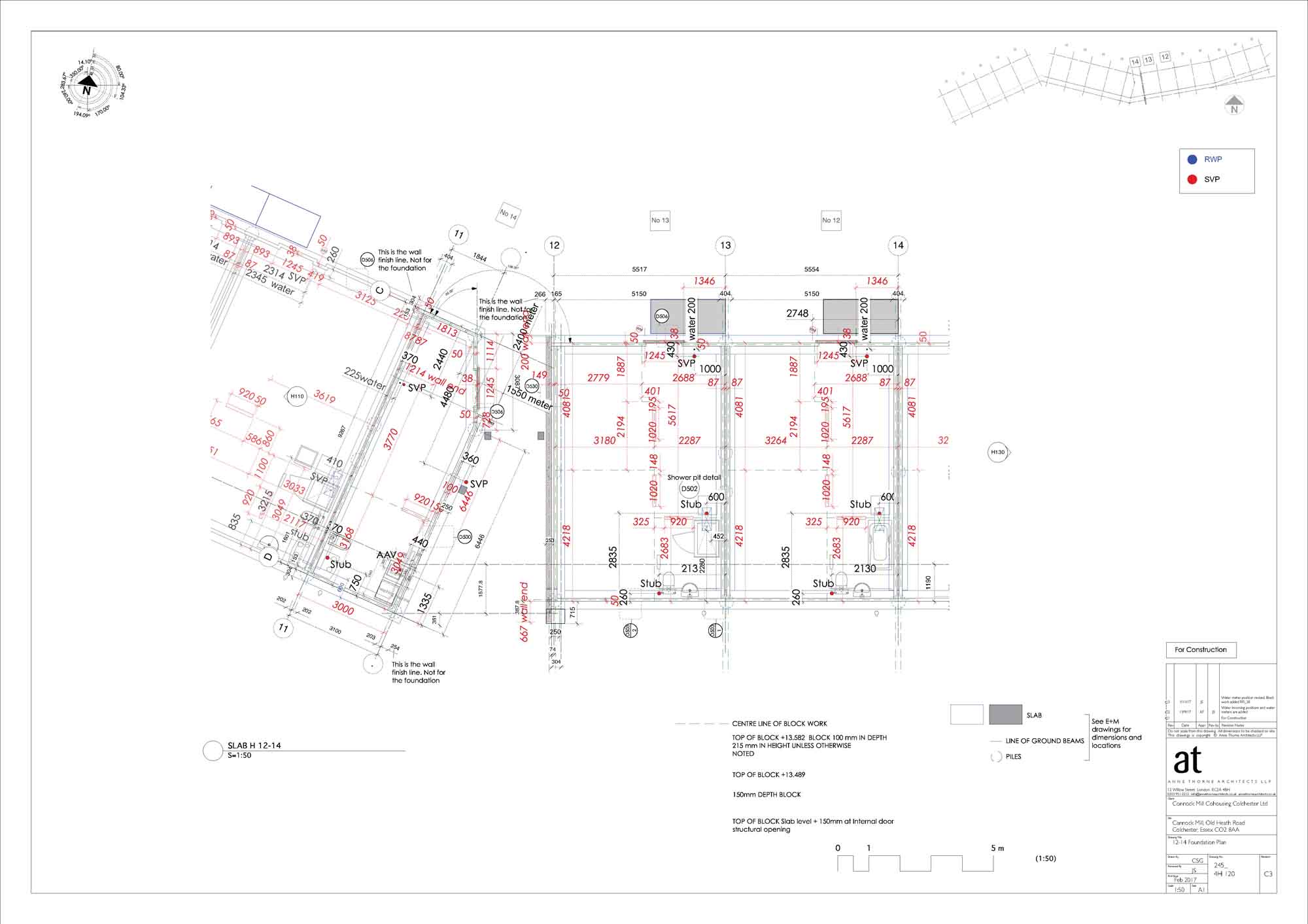 Thermal bridging: Ground wall junction: +0.023 W/mK. Achieved using one course of AAC block Airtec 7 lined with XPS insulation to the bottom of the wall. Floor insulation PIR is above the concrete slab and below screed. Threshold: 0.047 Wm/K with single AAC block Airtec 7 in line of door. Separating wall bottom: +0.08 W/mK using one course of AAC block Airtec 7. Floor insulation PIR is above the concrete slab and below screed. Balcony wall bottom: + 0.076 W/mK, separating the steel connection from the timber structure and the insulation zone.