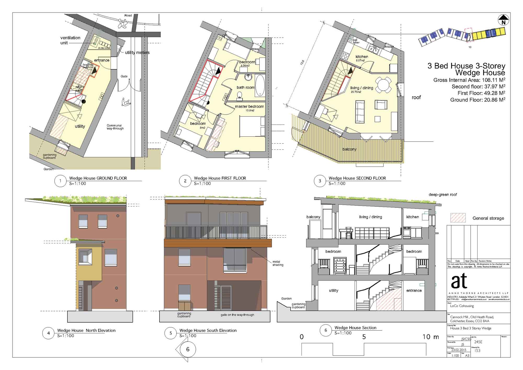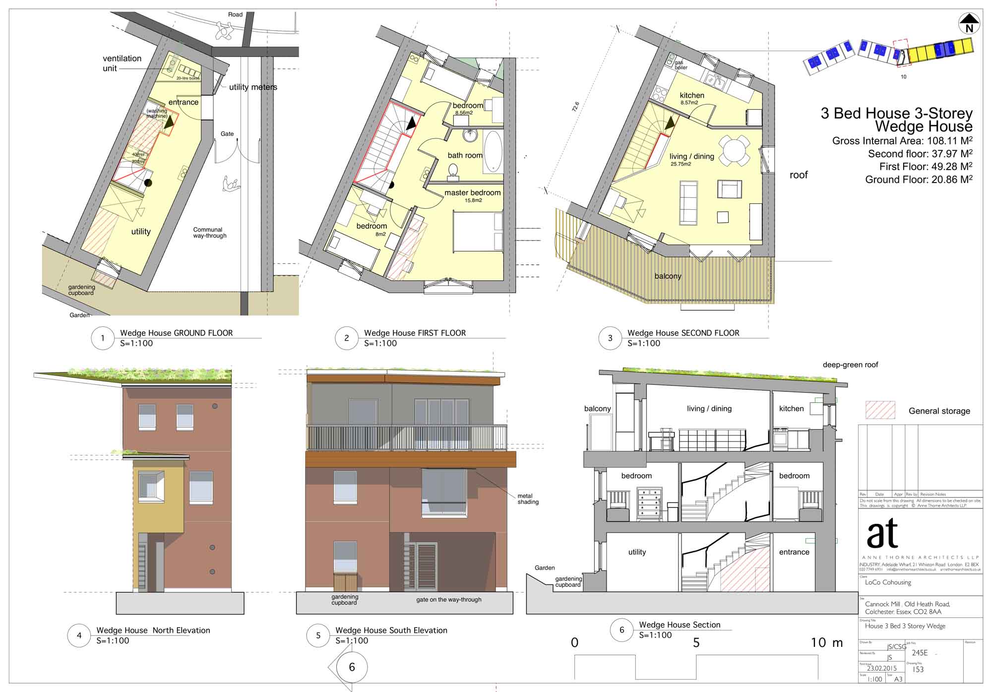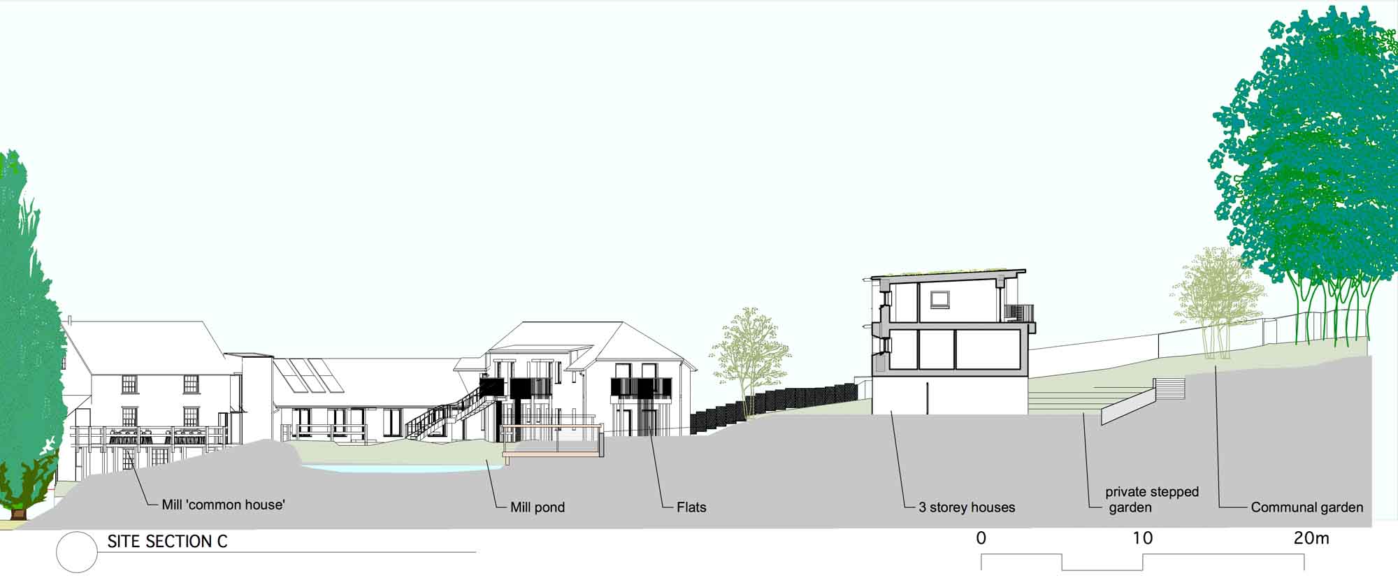Anne had always wanted to design the Cannock Mill cohousing scheme, and it was clear she had the skills required. But the group still had to officially appoint her at a meeting in accordance with their democratic principles. She set about drawing up plans for a development of twenty-three homes because the site already had outline planning permission for that number. The homes were split across three buildings: one with twelve houses, one with five houses, and one with six flats.
