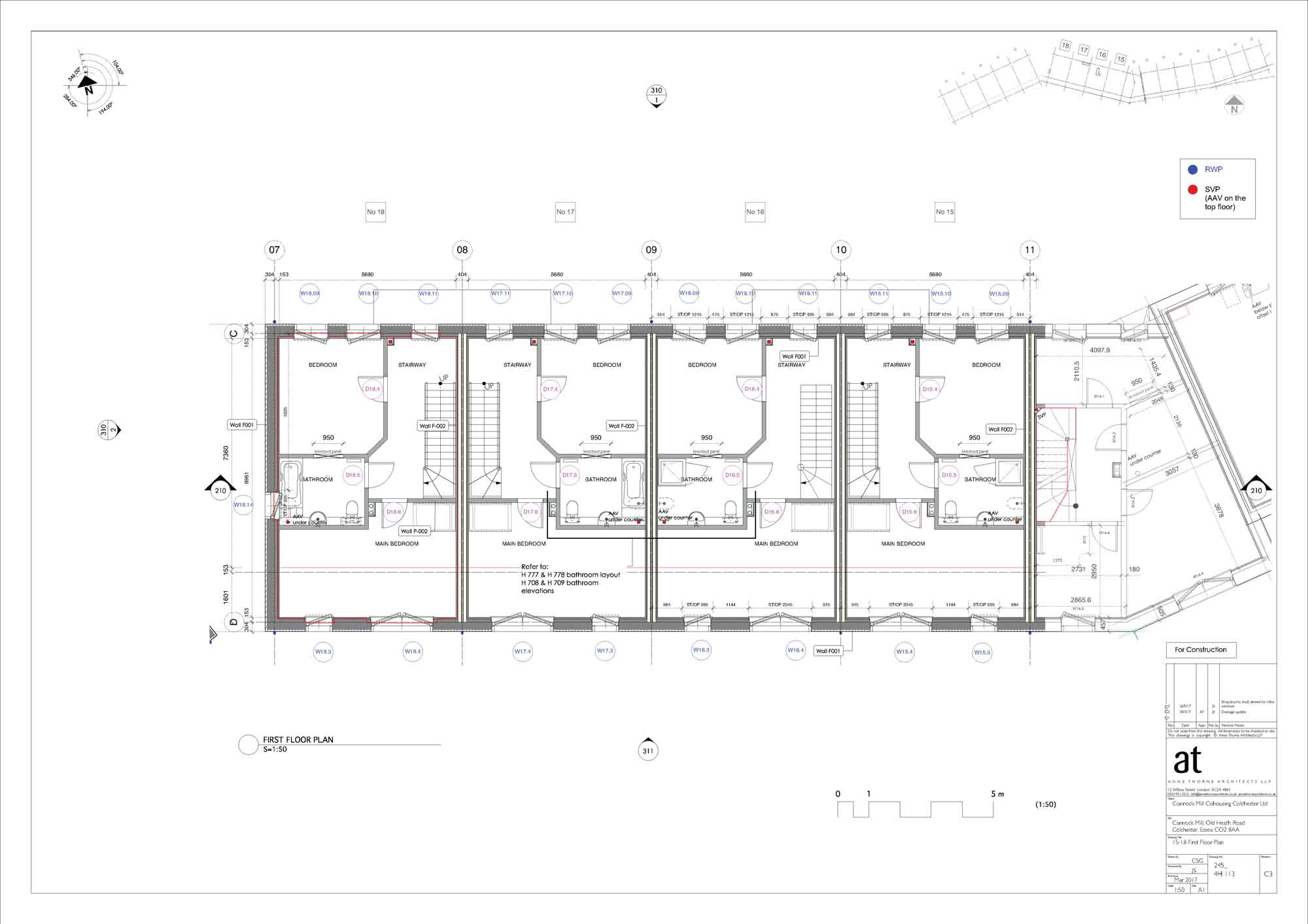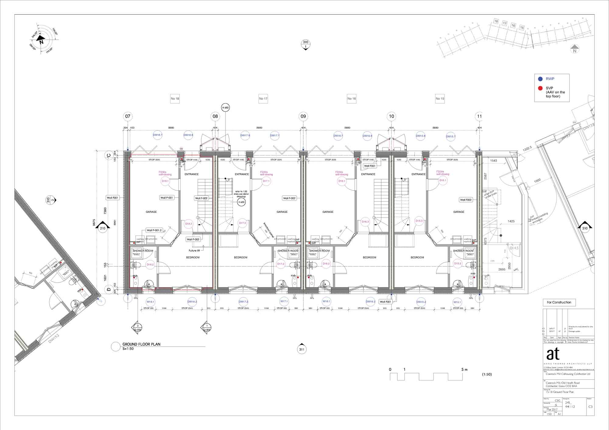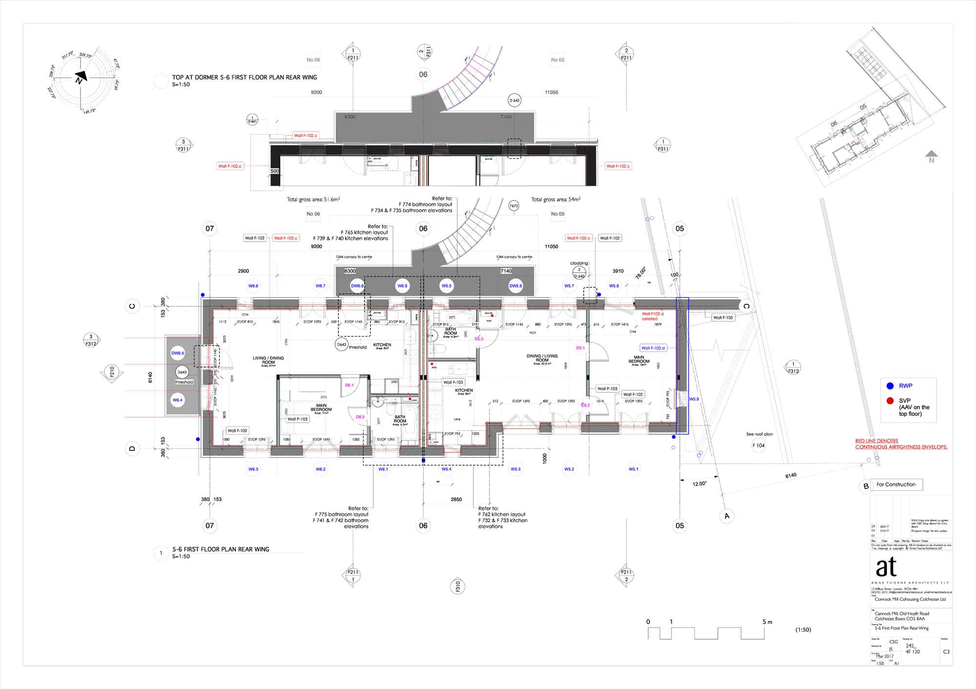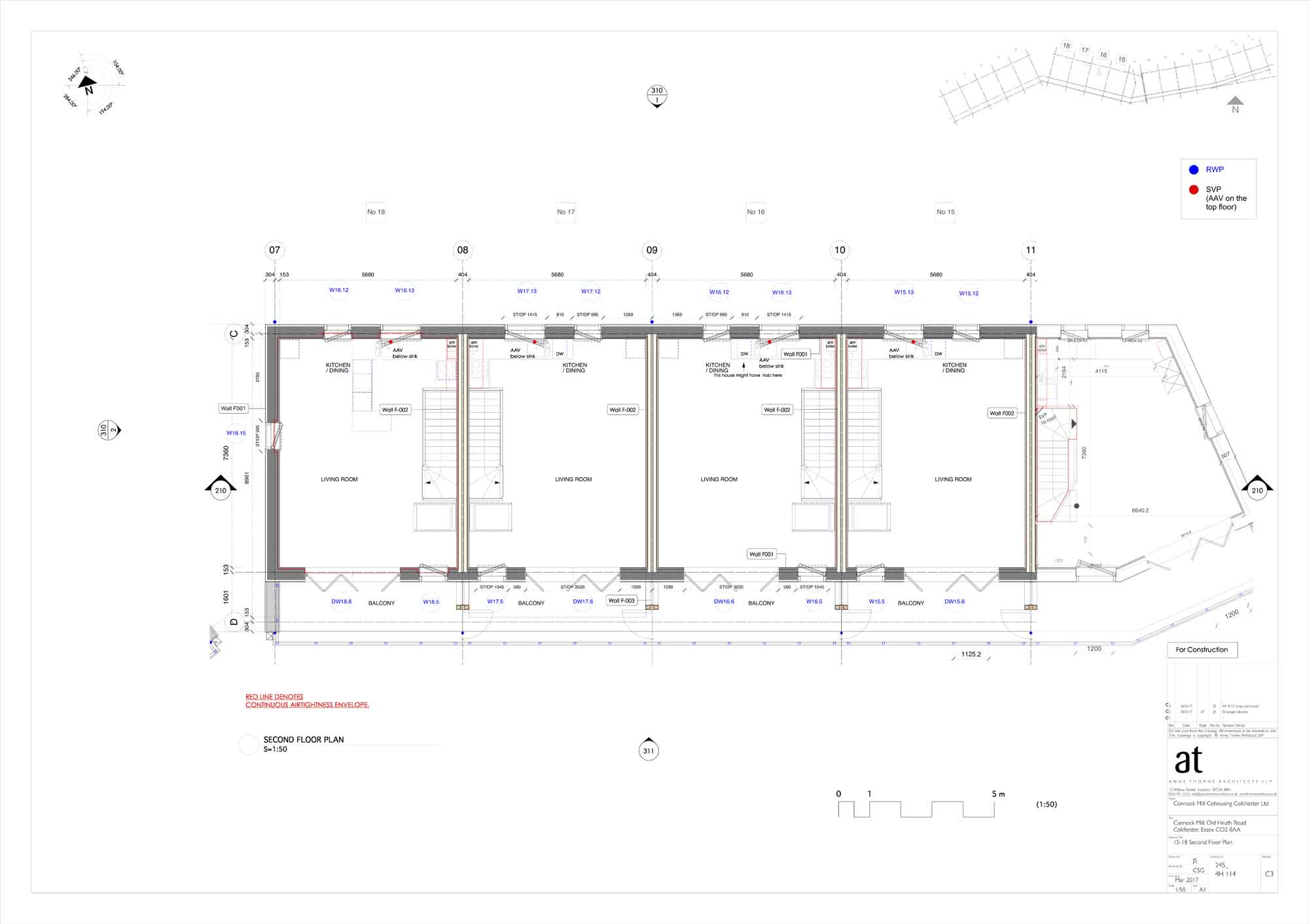 Airtightness (at 50 Pascals): Each dwelling was individually tested to be under 0.6 air changes per hour; for the purposes of passive house certification each of the three buildings was submitted at 0.6 ACH.