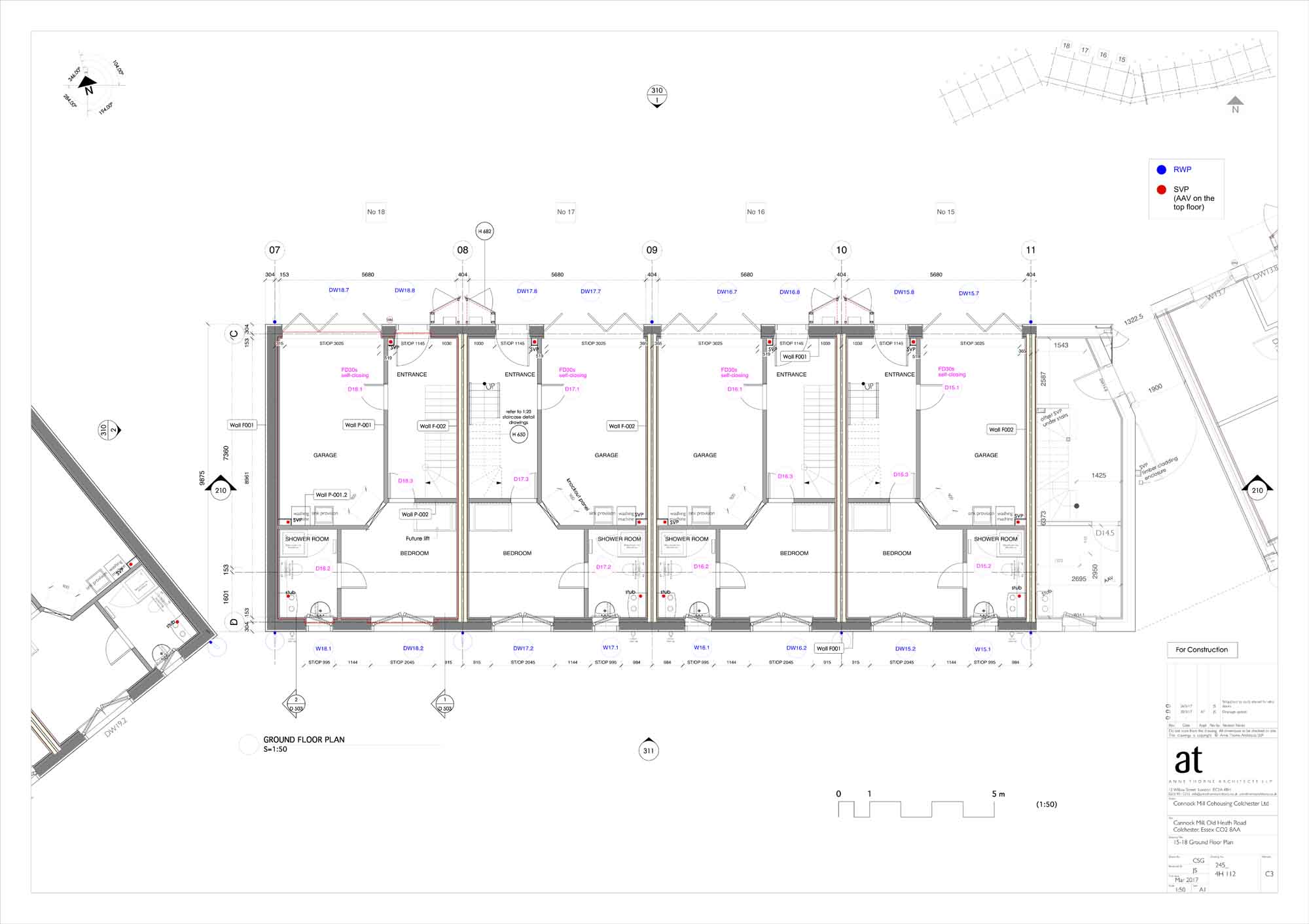 Windows & external doors: Green Building Store Progression timber frame internally, no frame externally, triple glazed argon-filled. Whole window U-value: 0.77 W/m2K. Green Building Store ULTRA timber frame windows and doors, triple glazed argon-filled. Whole window U-value: 0.94 W/m2K. Lacuna timber frame triple glazed argon-filled bi-fold doors. U-value: 0.95 W/m2K Heating system: Worcester Bosch Greenstar 28 and 36 CDi Compact gas boilers to each dwelling, distributing heat via radiators.