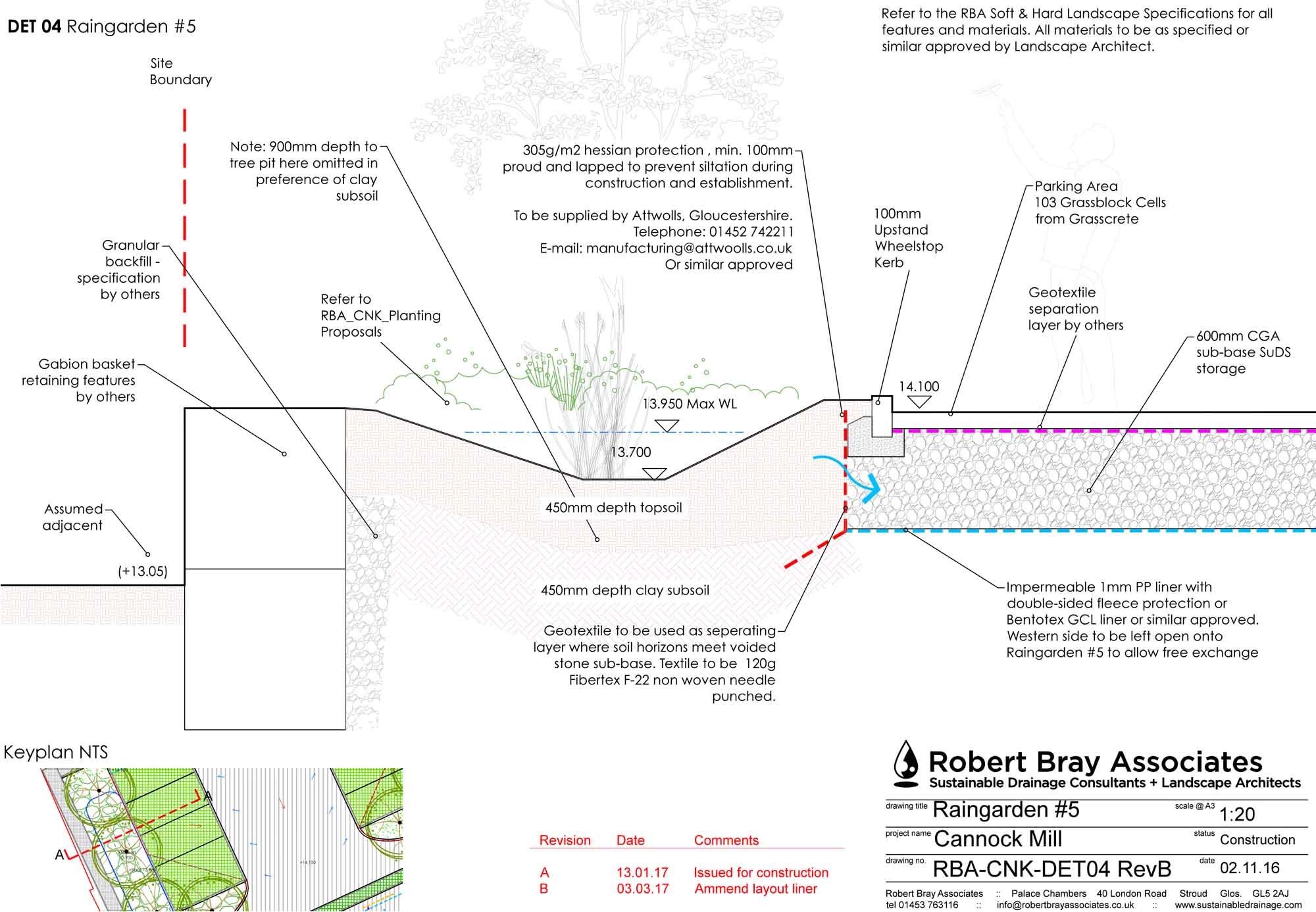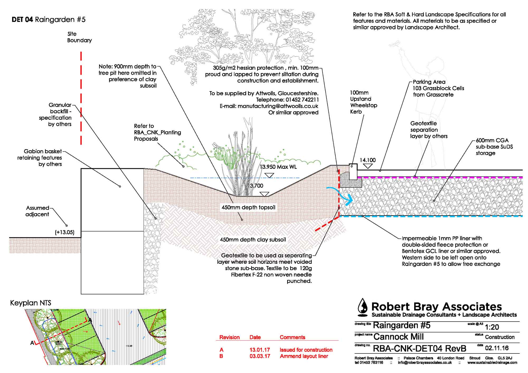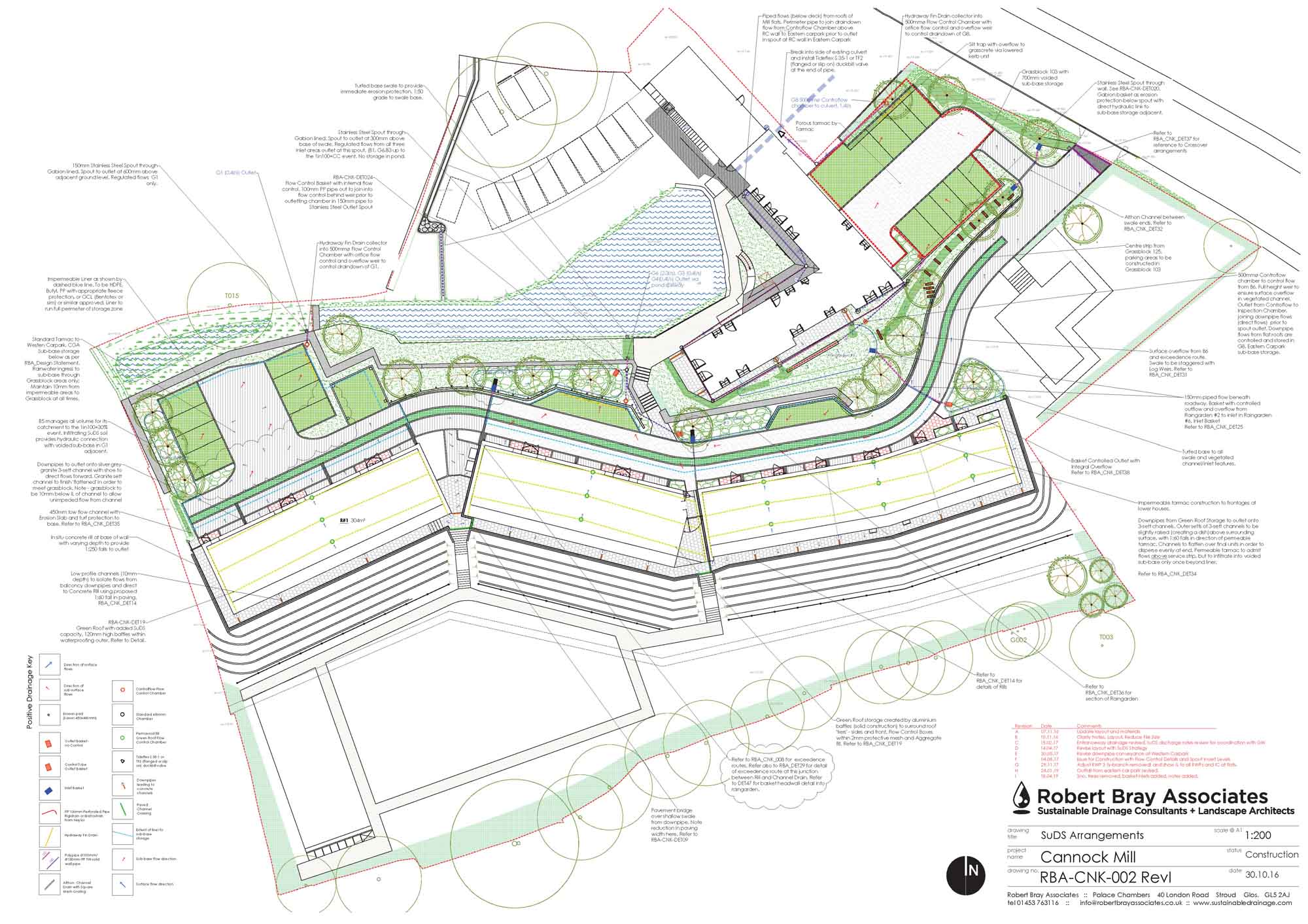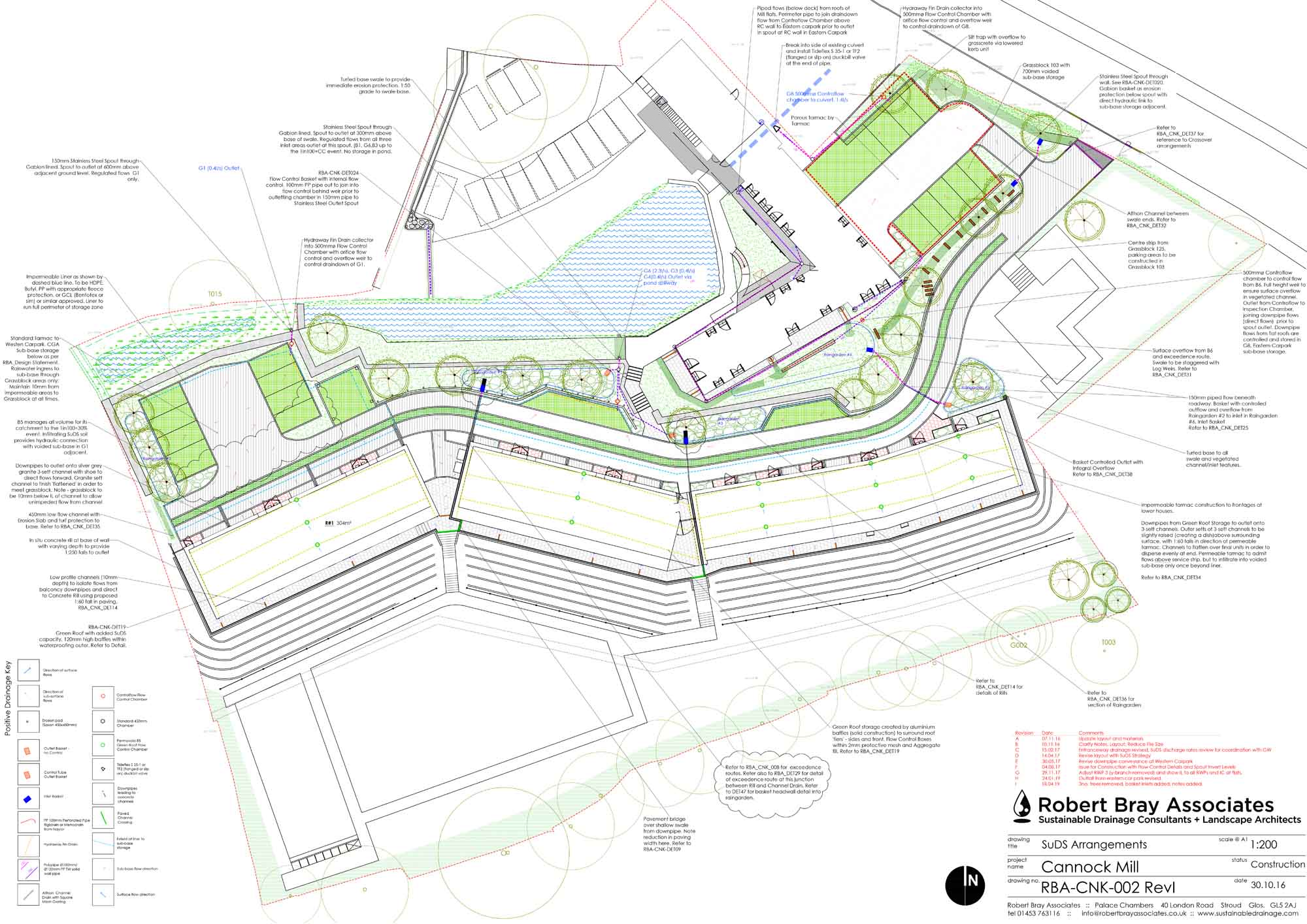 Anne worked closely with landscape architects who designed a sustainable urban drainage system (SUDS) that takes rainwater from the green roofs down into tanks under the road and rain gardens, which store it temporarily. It then goes into the mill pond and from there, it flows into the river.