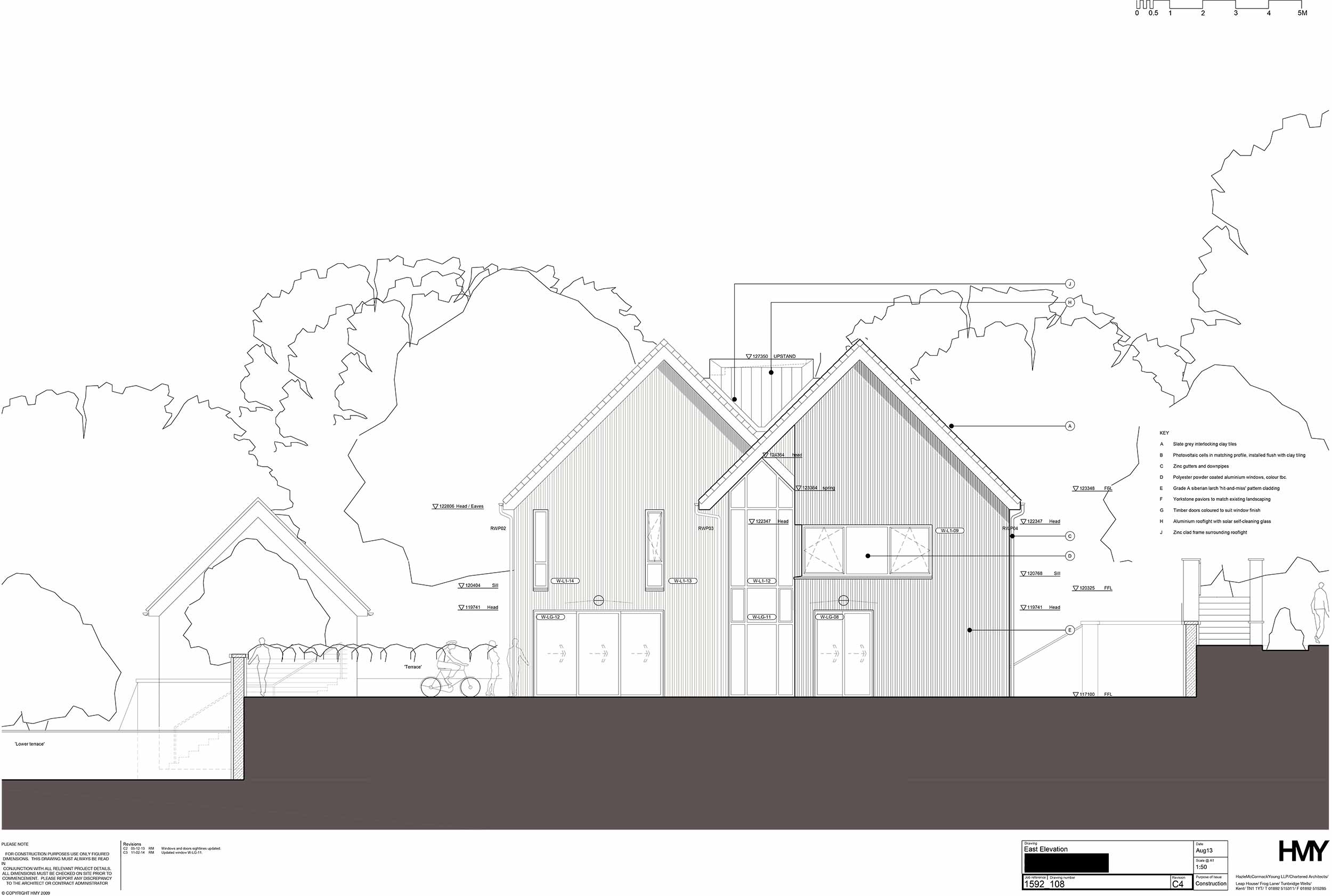 Green materials: All timber furniture from PEFC certified sources, material from demolition of existing house re-used in landscaping ground works.