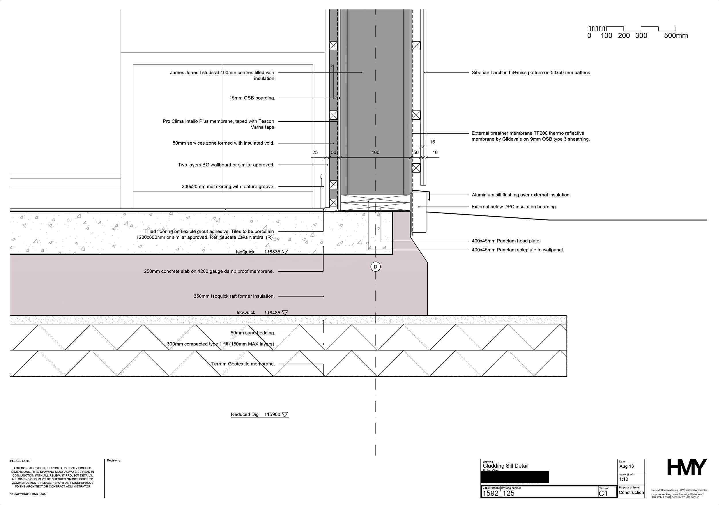 Thermal bridging: Use of IsoQuick floor raft to enable thermal bridge free ground junction. IBO accredited details for panellised timber frame construction.