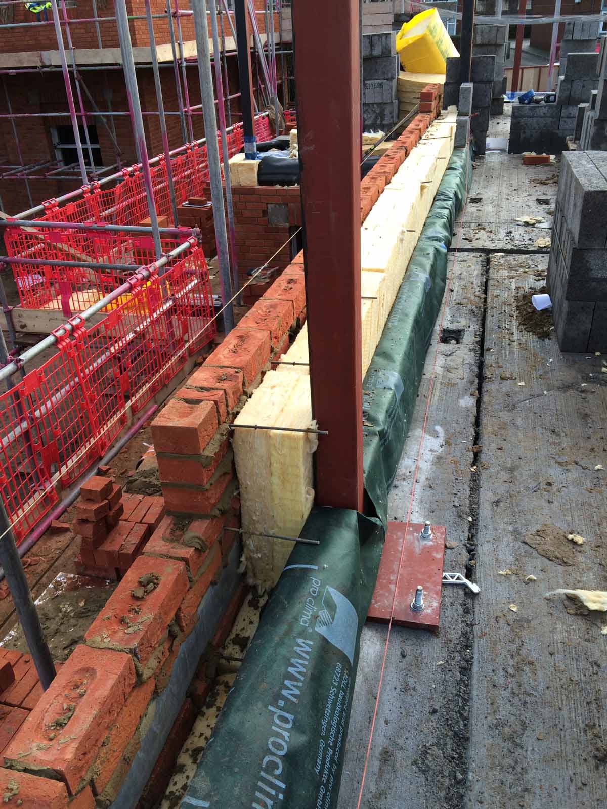 Intermediate floor to external wall: Intermediate floors supported by internal blockwork leaf so as not to bridge insulation layer.