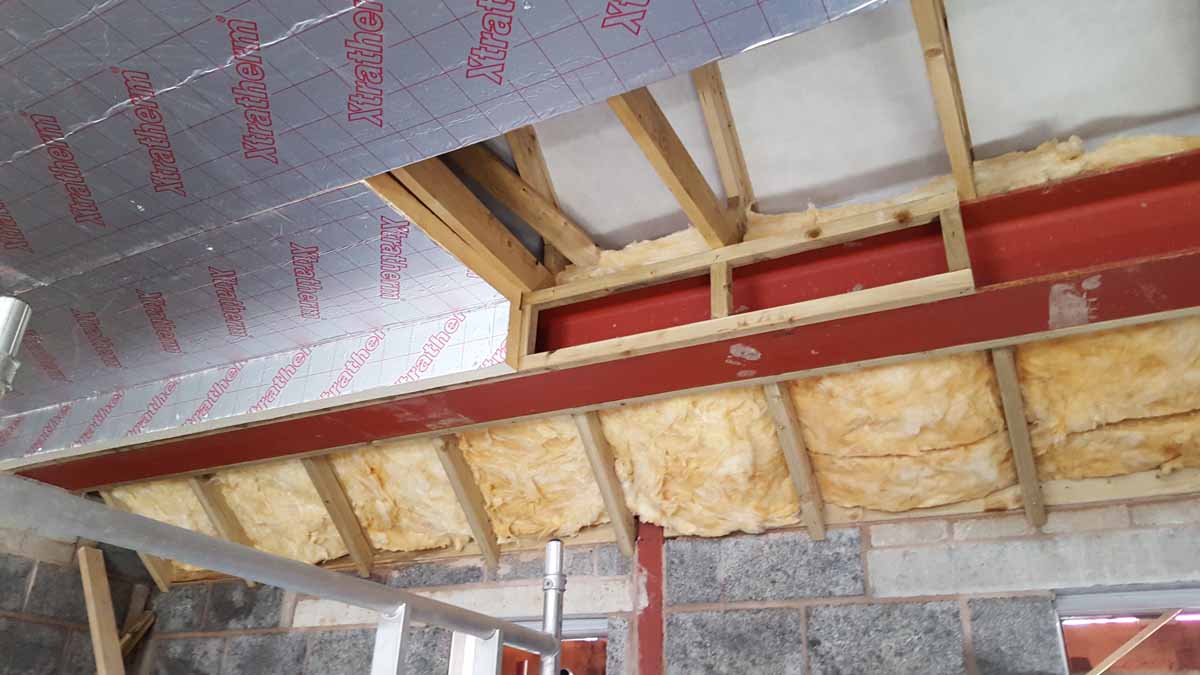 Xtratherm Thin-R insulation to underside of ceiling build-up, with Isover Spacesaver Plus above this to floor of attic above