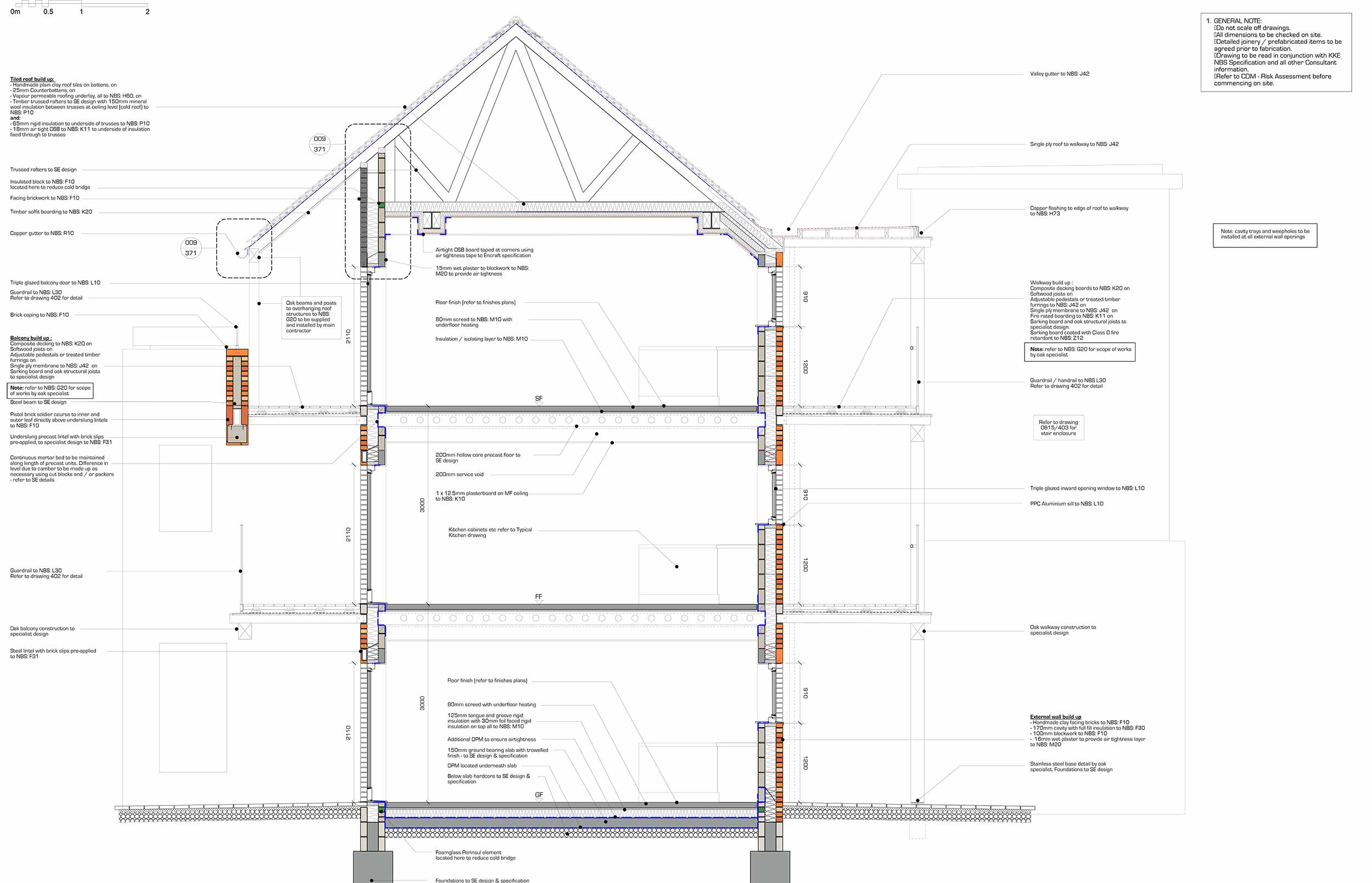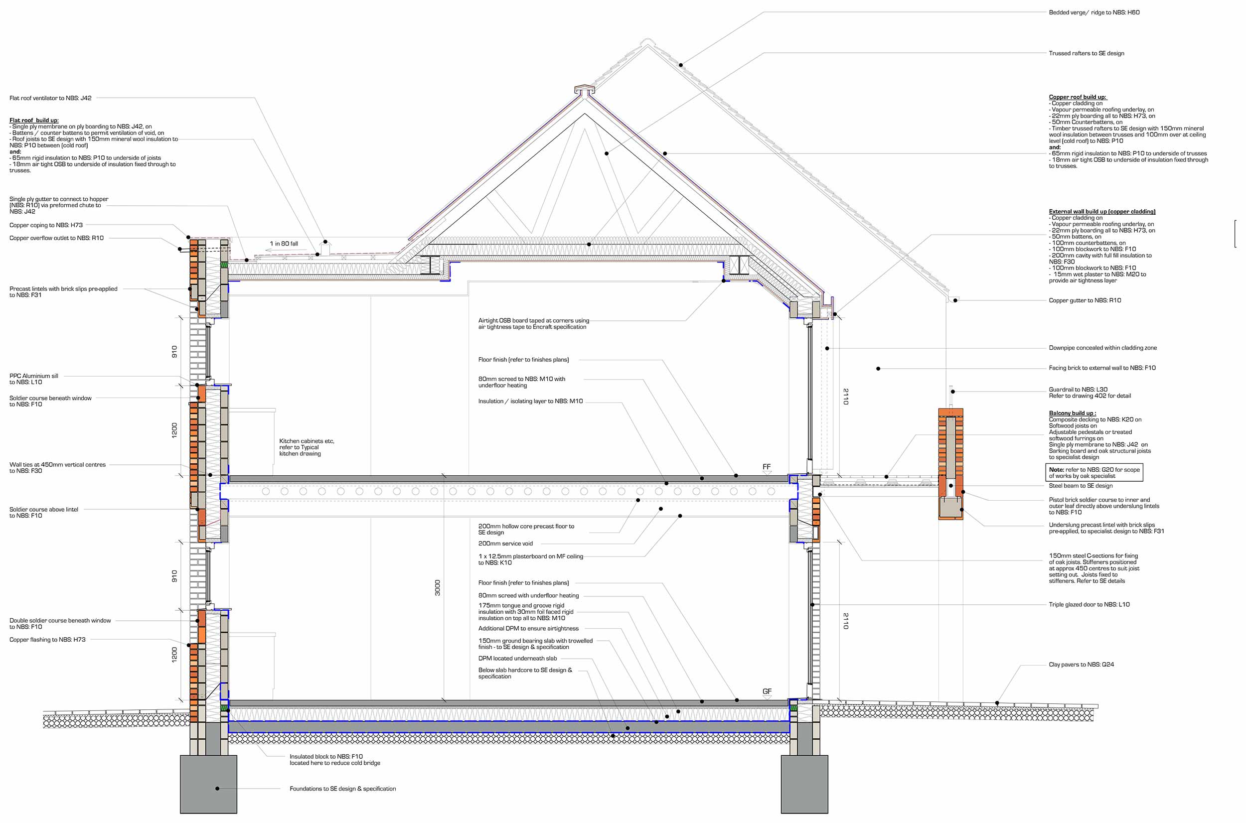 Window to external wall: Structural insulated cavity closers (Cavalok BigBlok) used to support windows. Double lintels used on inside and outside leaf to avoid thermal bridges.