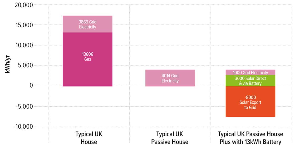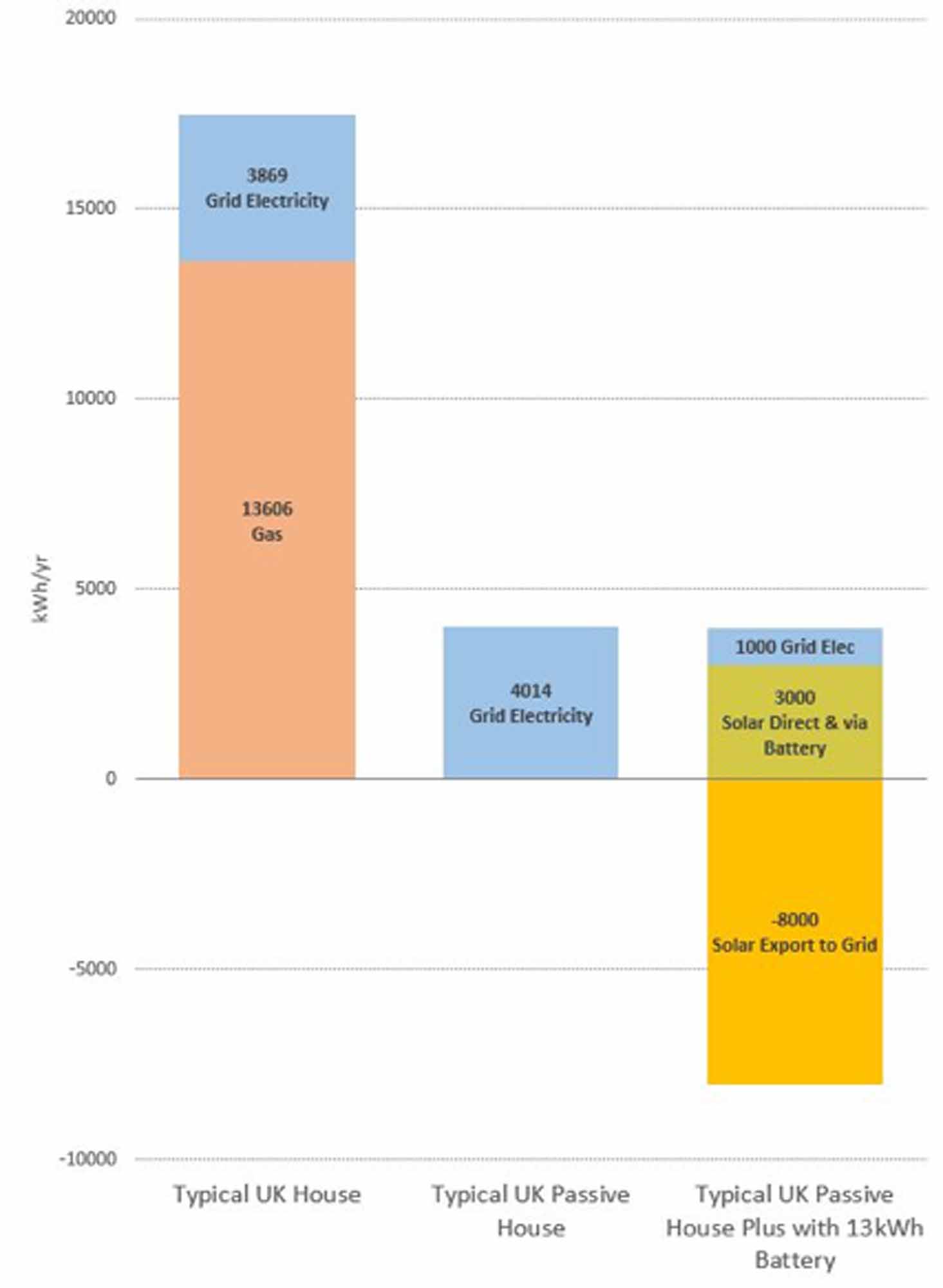 Crucially, initial monitoring results from passive house plus dwellings indicate that rolling out the passive house and passive house plus concepts at scale for retrofits and new-builds may have the potential to make decarbonisation of the grid achievable without the need for a gigantic increase in renewable energy infrastructure and associated storage, or such a massive renewal of national grid transmission network cables.