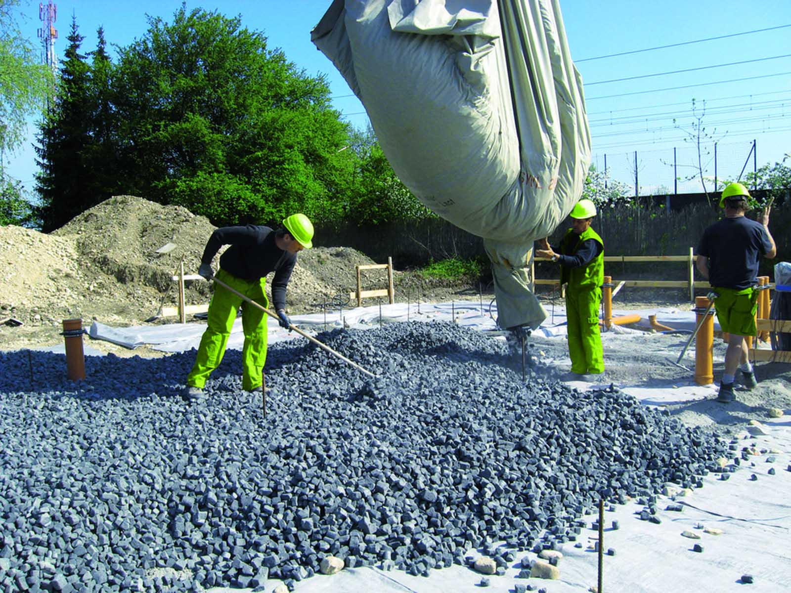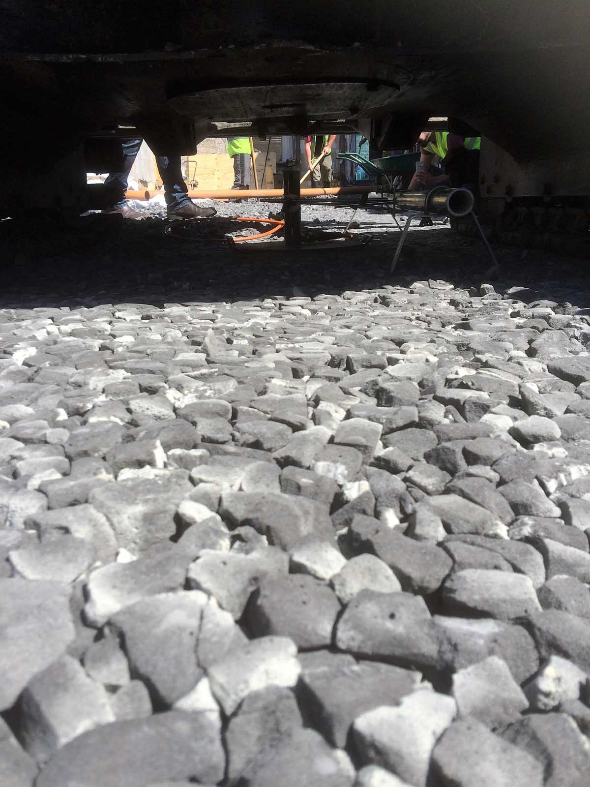 Geocell, a foam glass gravel material that is both load-bearing and insulating