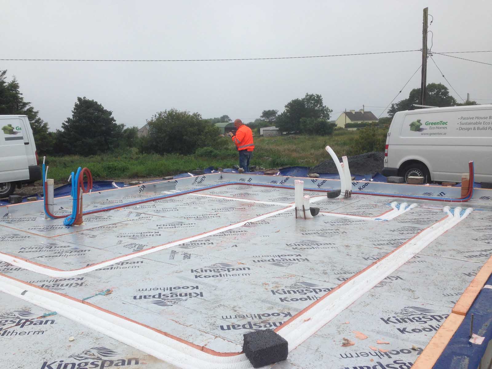 150mm Xtratherm insulation laid under the floor slab of Ireland’s first passive house pharmacy, on a tight site in Tipperary