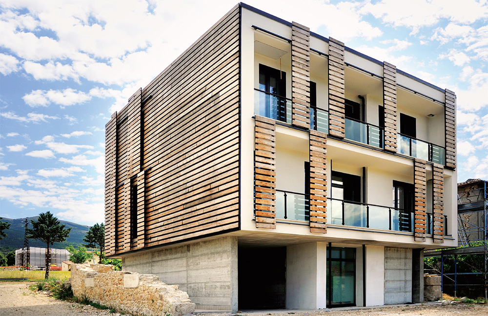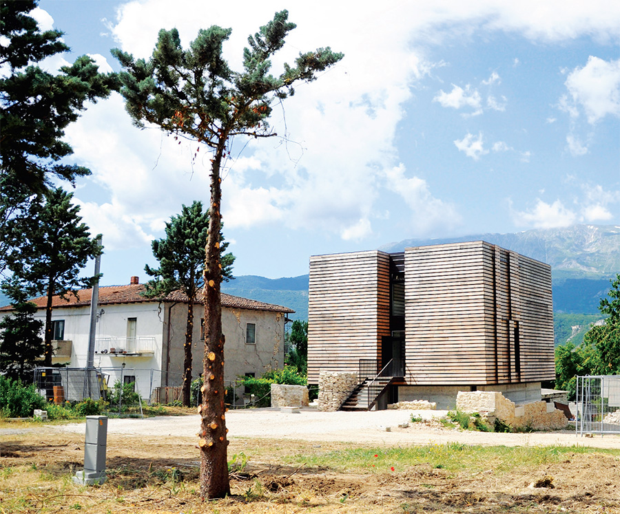 The larch-clad Energy Box in L'Aquila, Italy has replaced a home destroyed during the 2009 earthquake that devastated the region.
