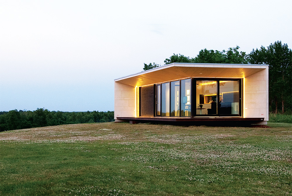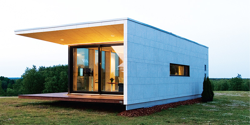 Designed to be erected in just a day or two — with most work done off-site — this unit is intended as an addition to an existing house, or as a guesthouse or holiday cottage.