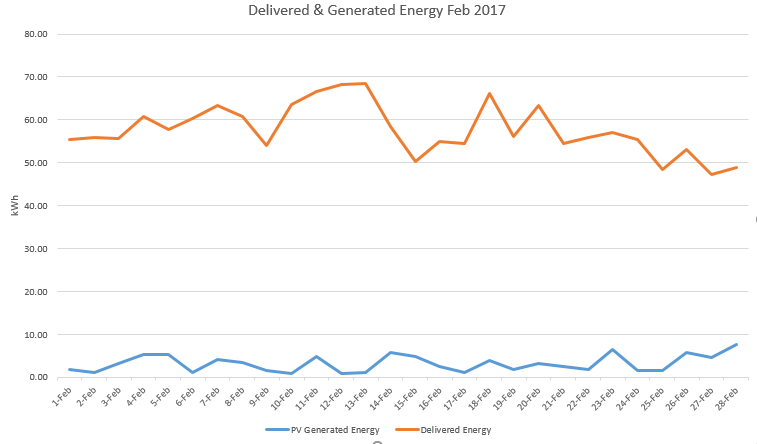 The overall energy demand was 5.6 kWh/m2/yr for the month of February, equating to 67.45 kWh/ m2/yr for a full year if February is an average month — close to the primary energy demand of 65 kWh/ m2/yr as calculated in PHPP. While the solar PV array only produced 89.63kWh for all of February, this increased to 176.47 kWh in April. Overall energy demand declined to 4.22 kWh/m2 in April (or 50.61 kWh/m2/yr, if April is used as an average month).