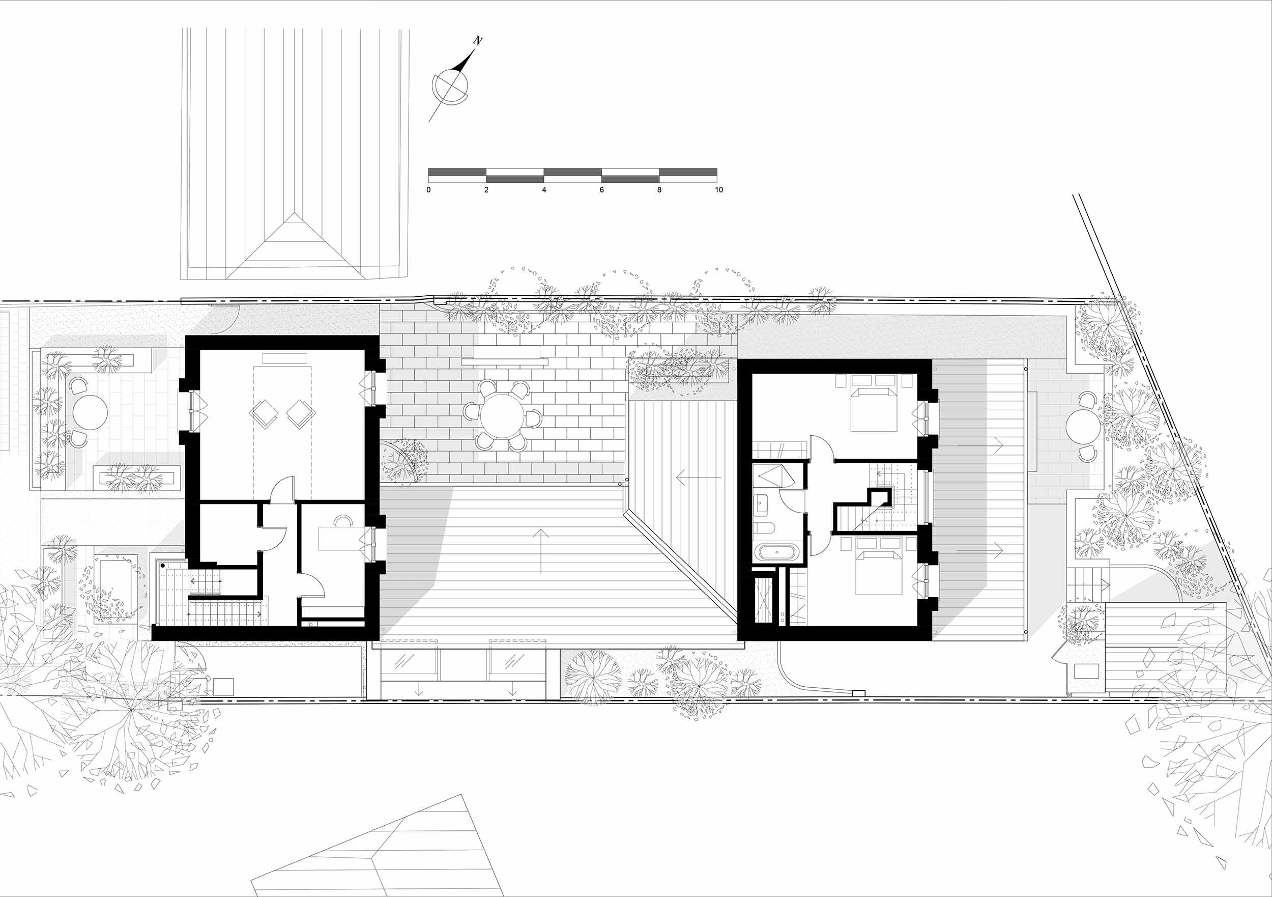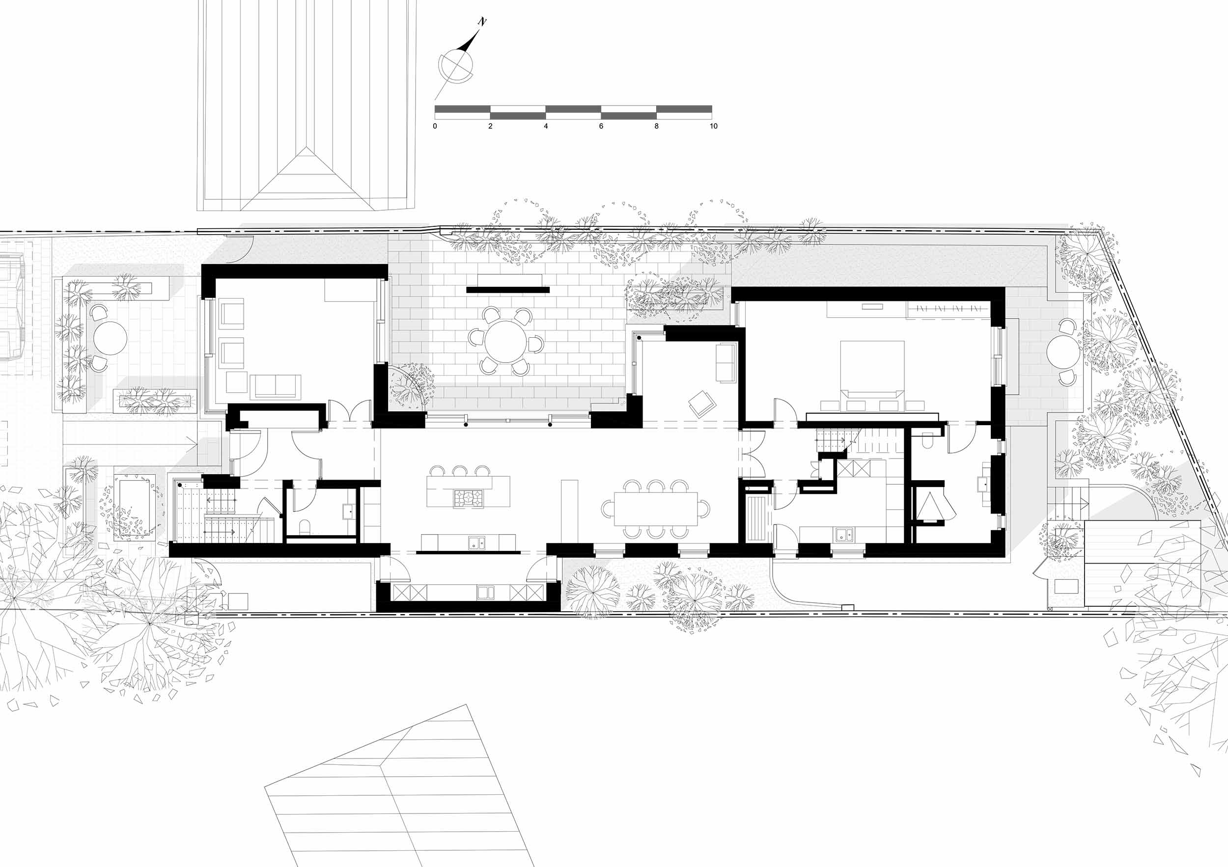 What architects John Morehead and Jennifer Kenefick came up with was a design comprising two double-storey sections connected by a single-storey link. The building wraps around an internal courtyard that takes advantage of the sun at all times of the day, making use of the site depth while acknowledging existing building lines. The path of the winter sun through the sky was used to guide the trimming of trees along the southeast boundary, helping to optimise solar gain.