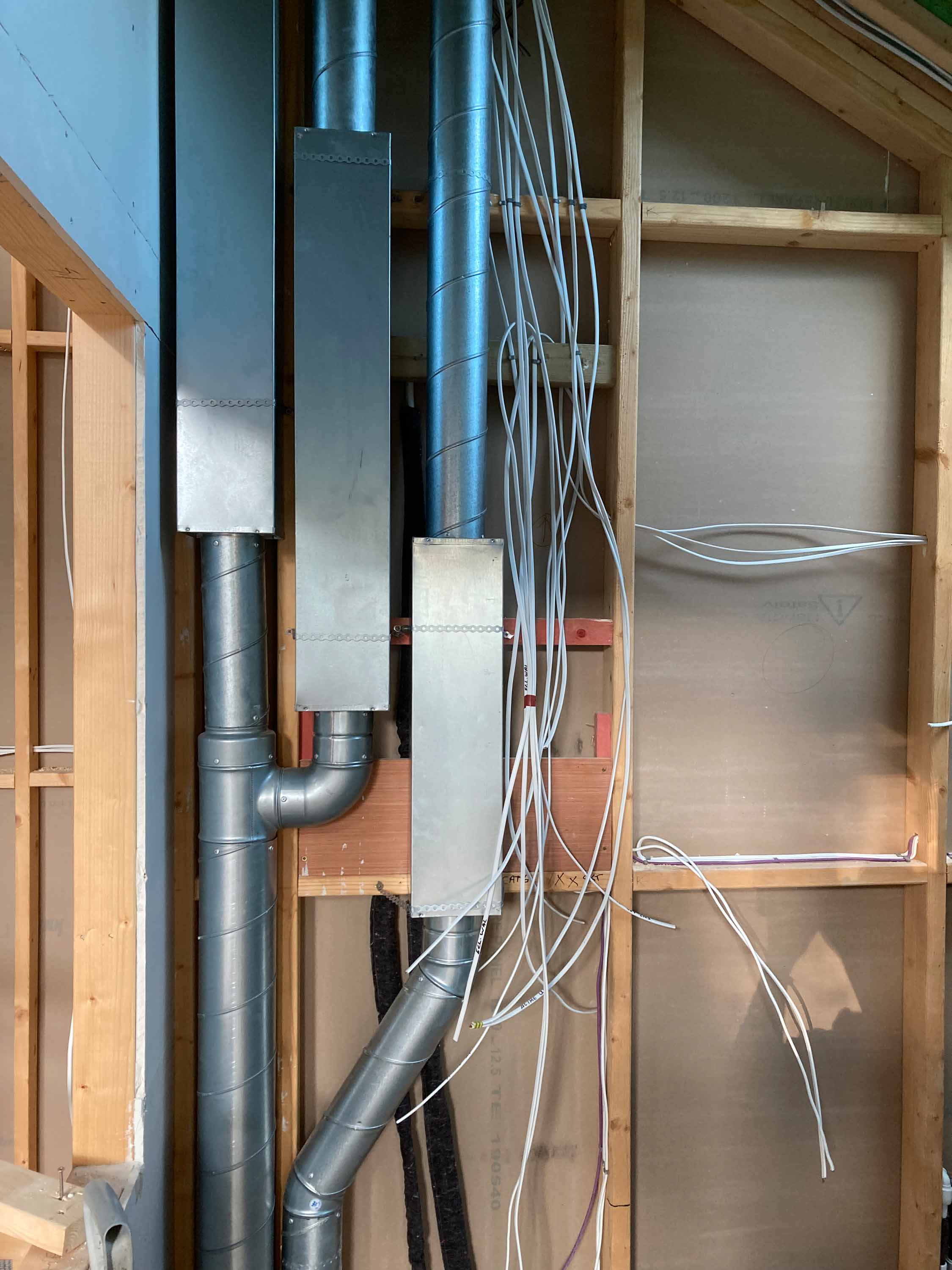 Ventilation system: PHI-certified heat recovery ventilation systems in each case. Ubbink Ubiflux Vigor 400 (in units 1 and 2), with 89 per cent heat recovery, 228 m3/hr. @ 39 Pa (average of two fans); Ubbink Ubiflux Vigor 325 (in unit 3), 91 per cent heat recovery, 186 m3/hr. @ 33 Pa (average of two fans)