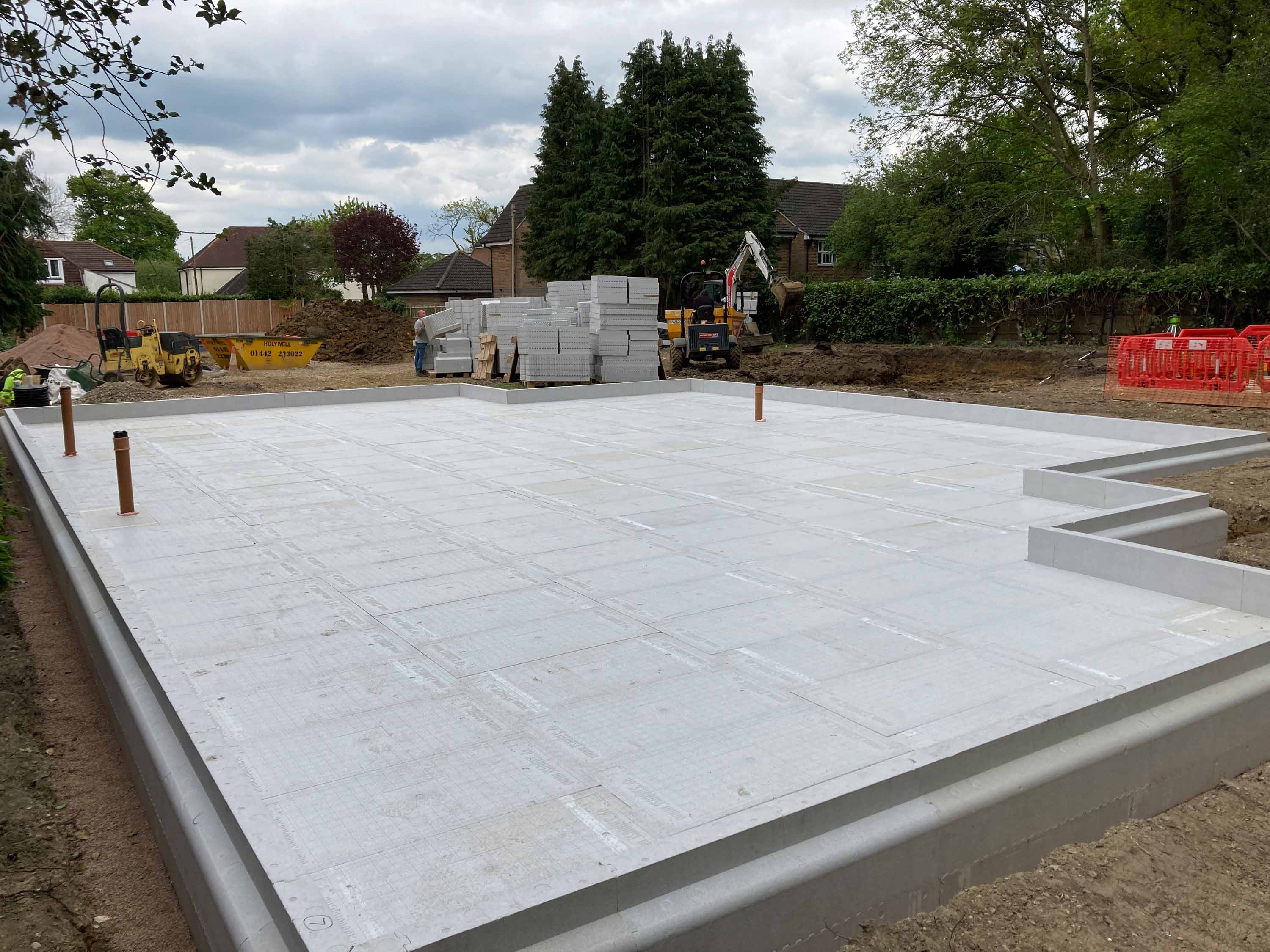 Ground floor build-up features a passive house certified Isoquick insulated raft foundation system