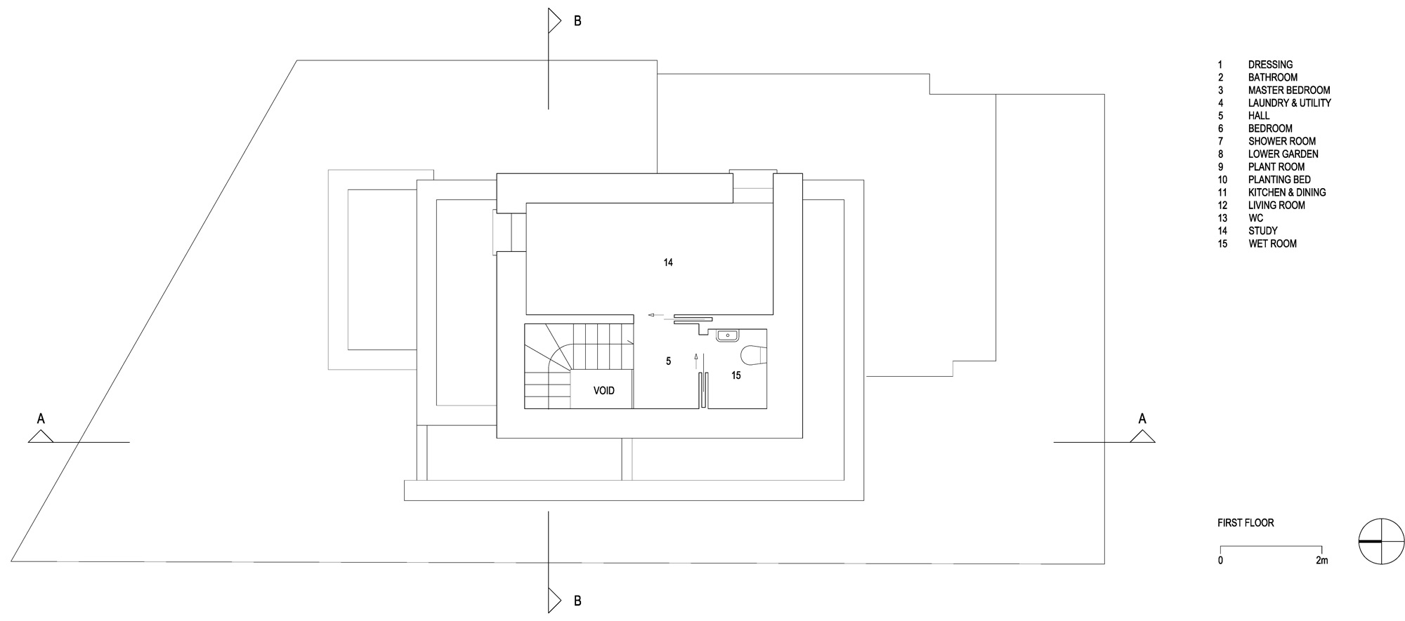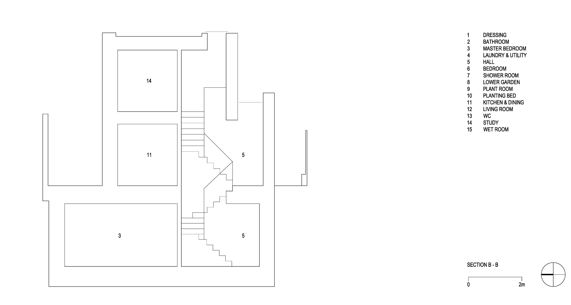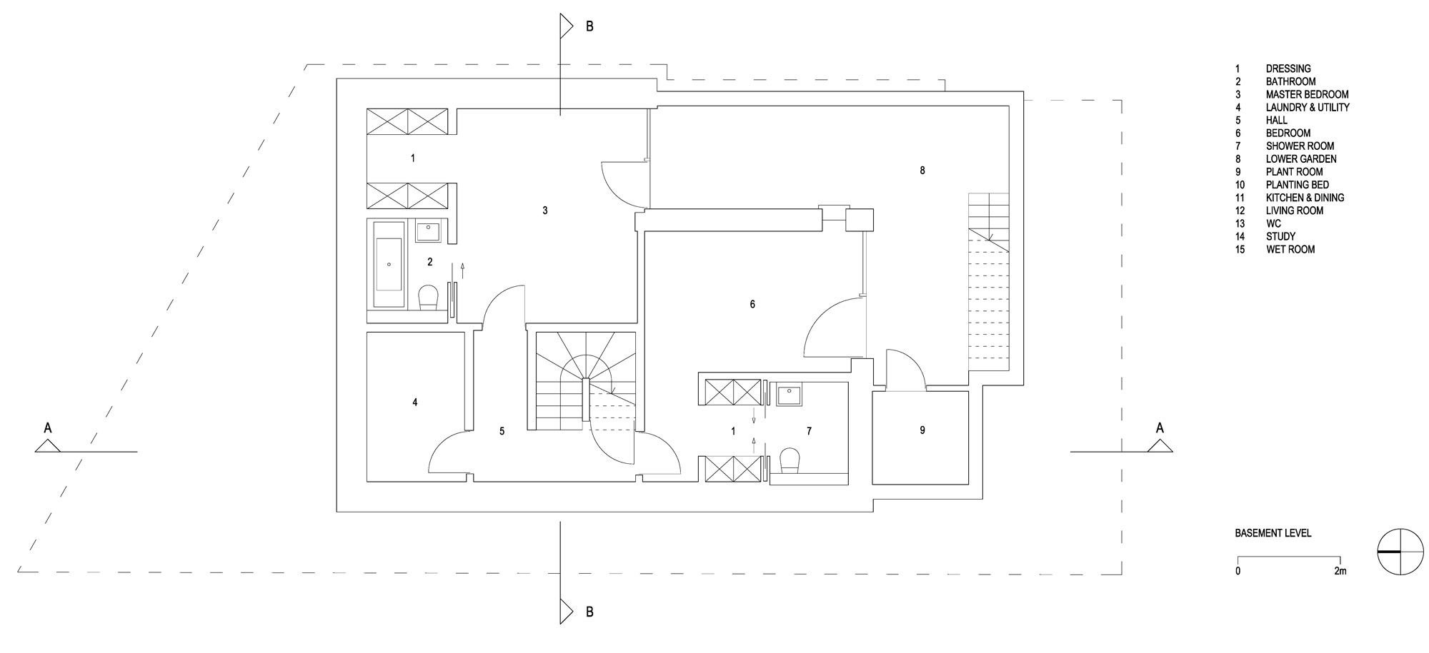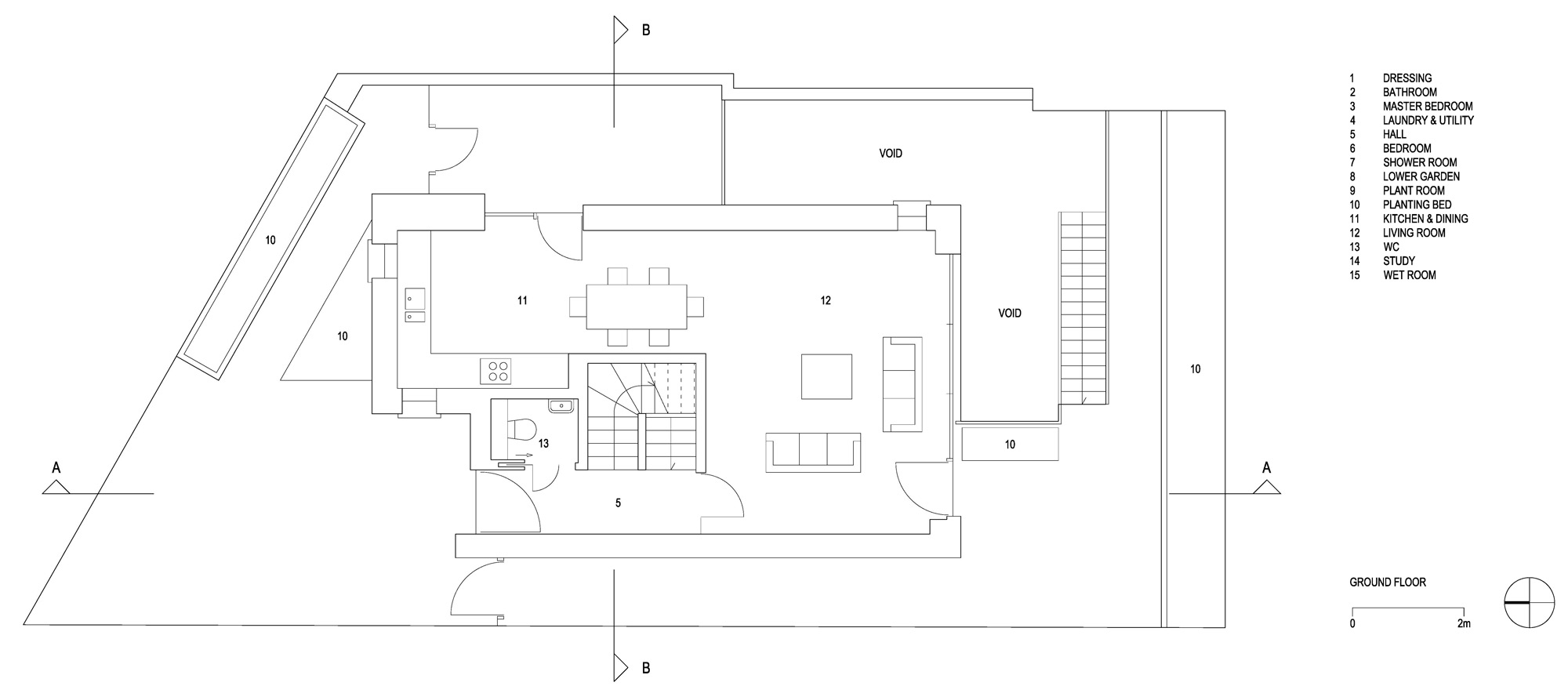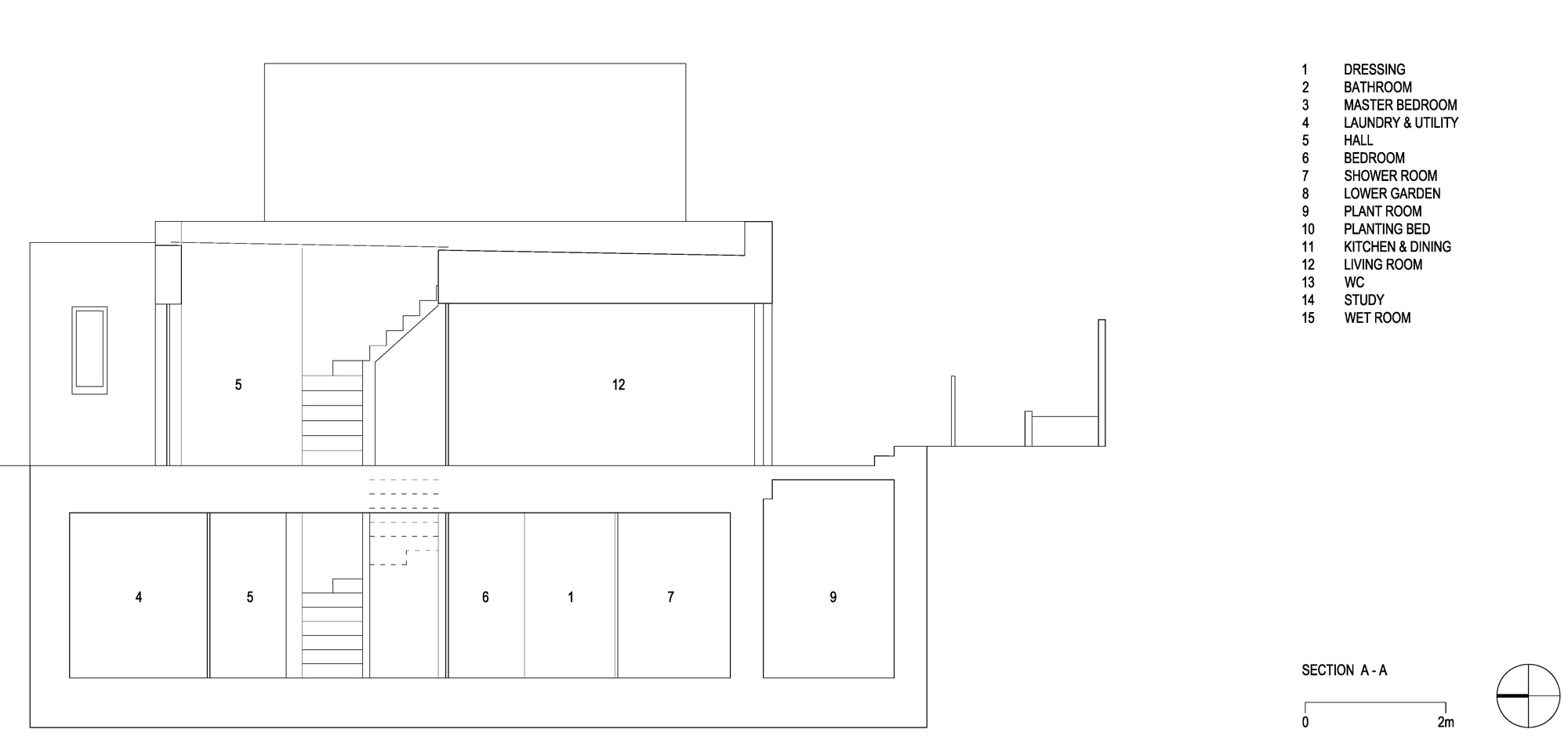 Due to difficulty obtaining planning permission, the lower storey was situated below street level to avoid overlooking neighbouring properties