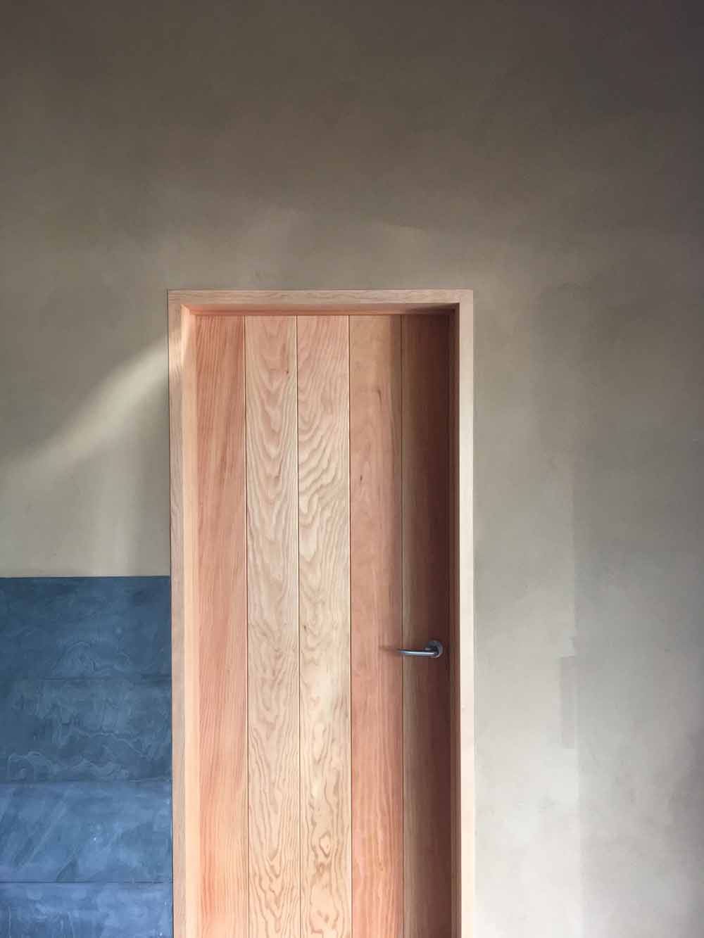 The clay plasters are either left natural or finished with natural pigments. Exposed timber is oiled with Osmo oil, and Auro paints were used on plasterboard ceilings – both these product ranges are mainly plant-based, or use natural products such as milk casein.