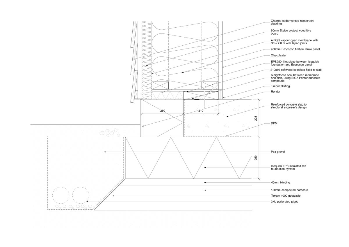 The straw panels were set out from the floor slab in order to align the straw layer with the returns of the under-slab insulation.