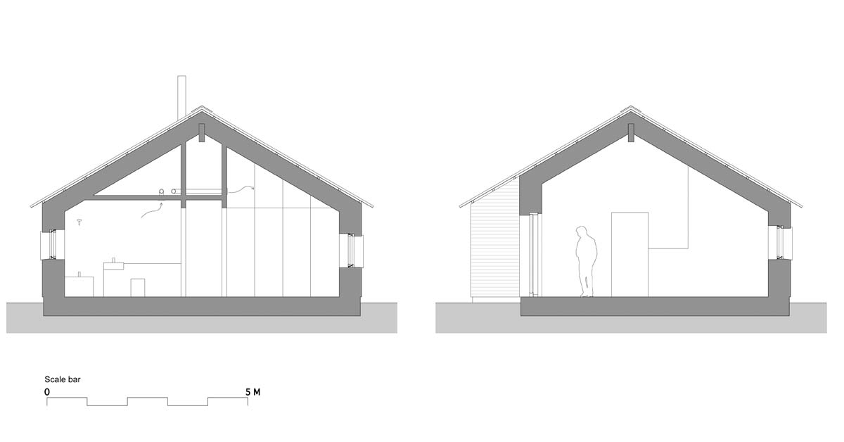 The Duchy required the building to look simple and modest – the former shooting hut was a low-roofed timber shed, and they wanted the house to reflect this agricultural aesthetic. This ruled out Juraj’s original, more overtly contemporary design with its monopitch green roof and distinctive glazing.