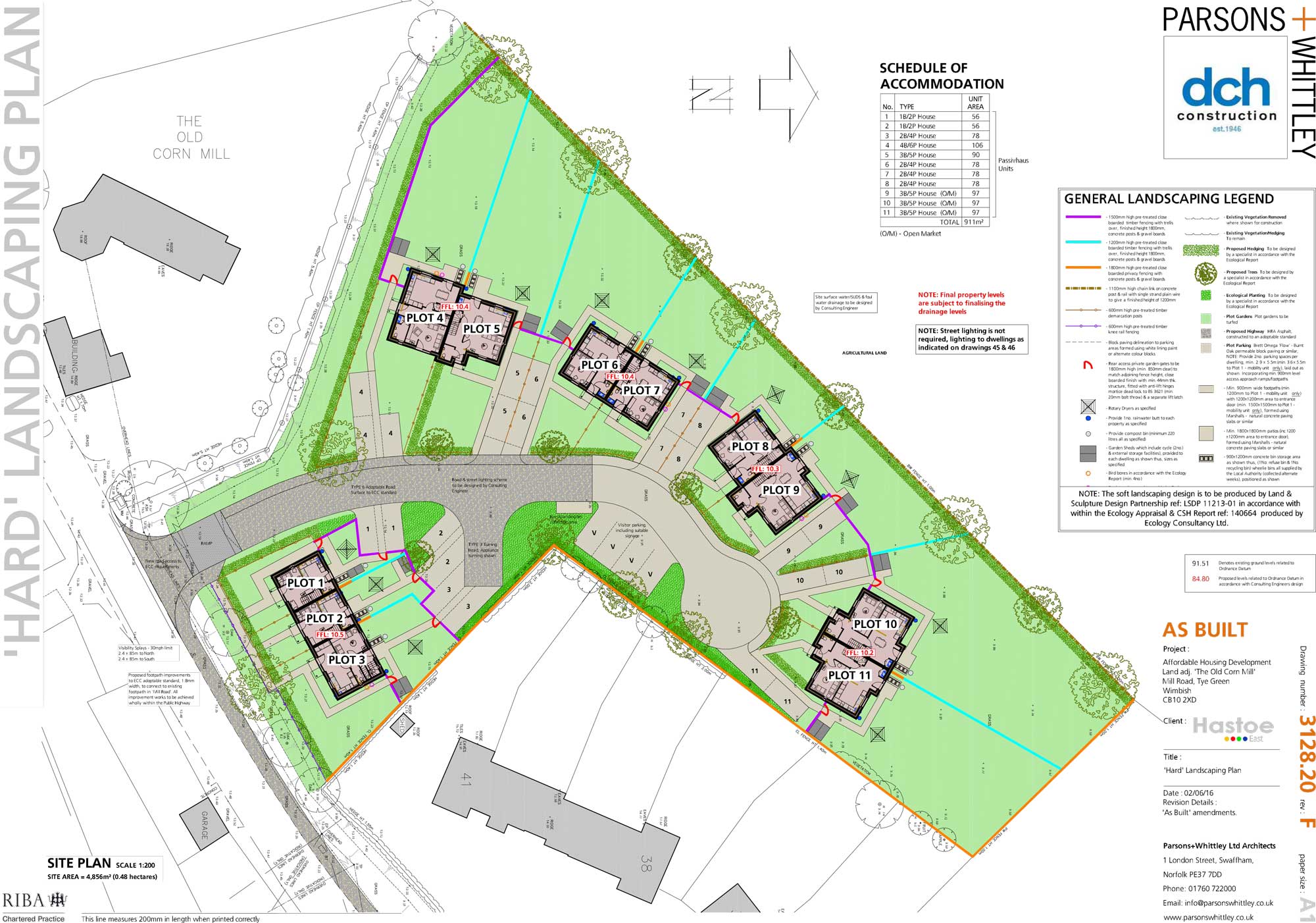 Green materials: All key elements within the building fabric achieve between a BRE Green Guide ‘A+ to B’ rating, 80% of all materials used on the development are sustainably sourced & 100% of the timber used on site is sustainably sourced according to the architects, 100% of the insulating materials are to have a global warming potential (GWP) of less than 5, boilers to each dwelling with Dry NOx Levels ≤70 (boiler class 5).