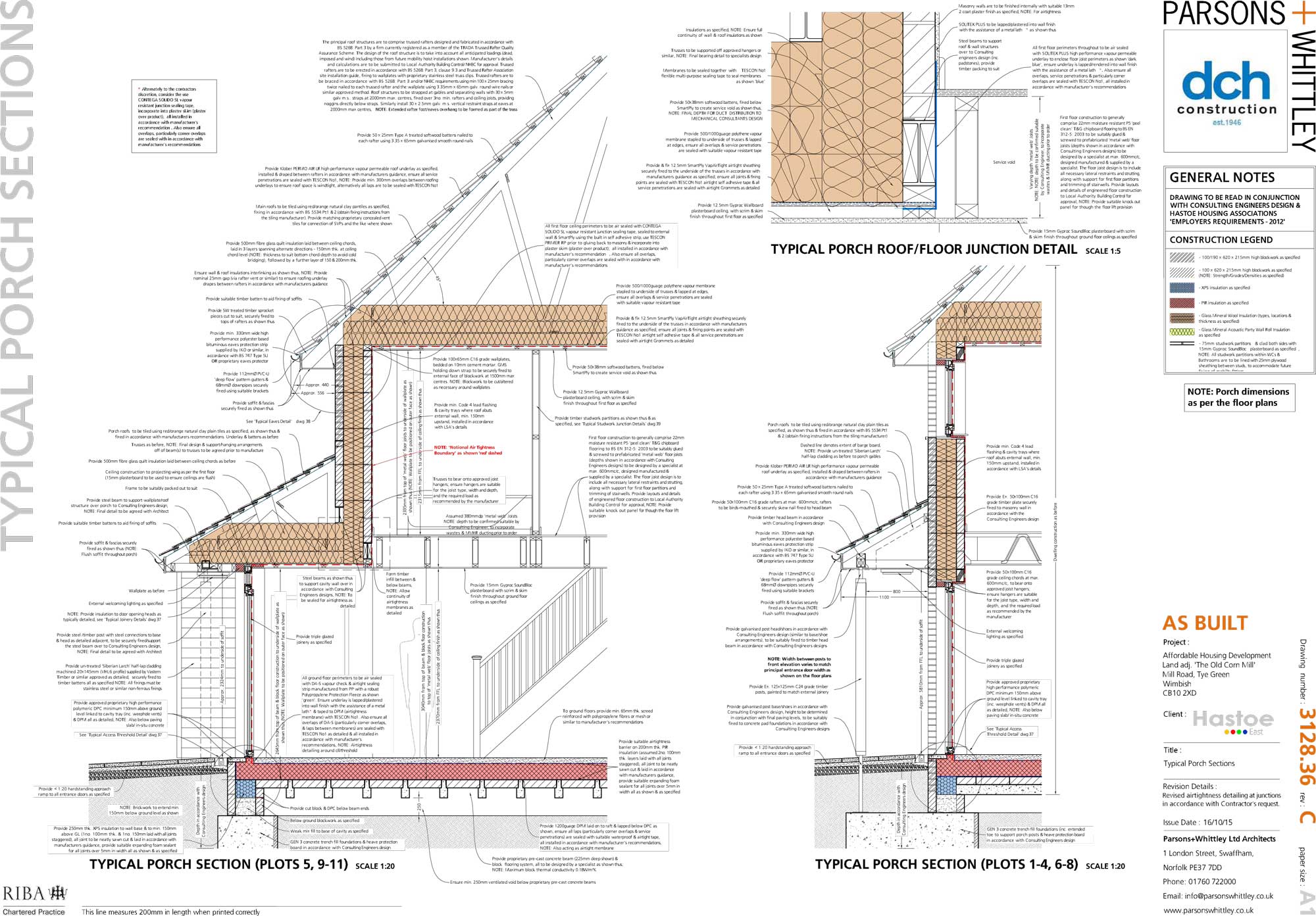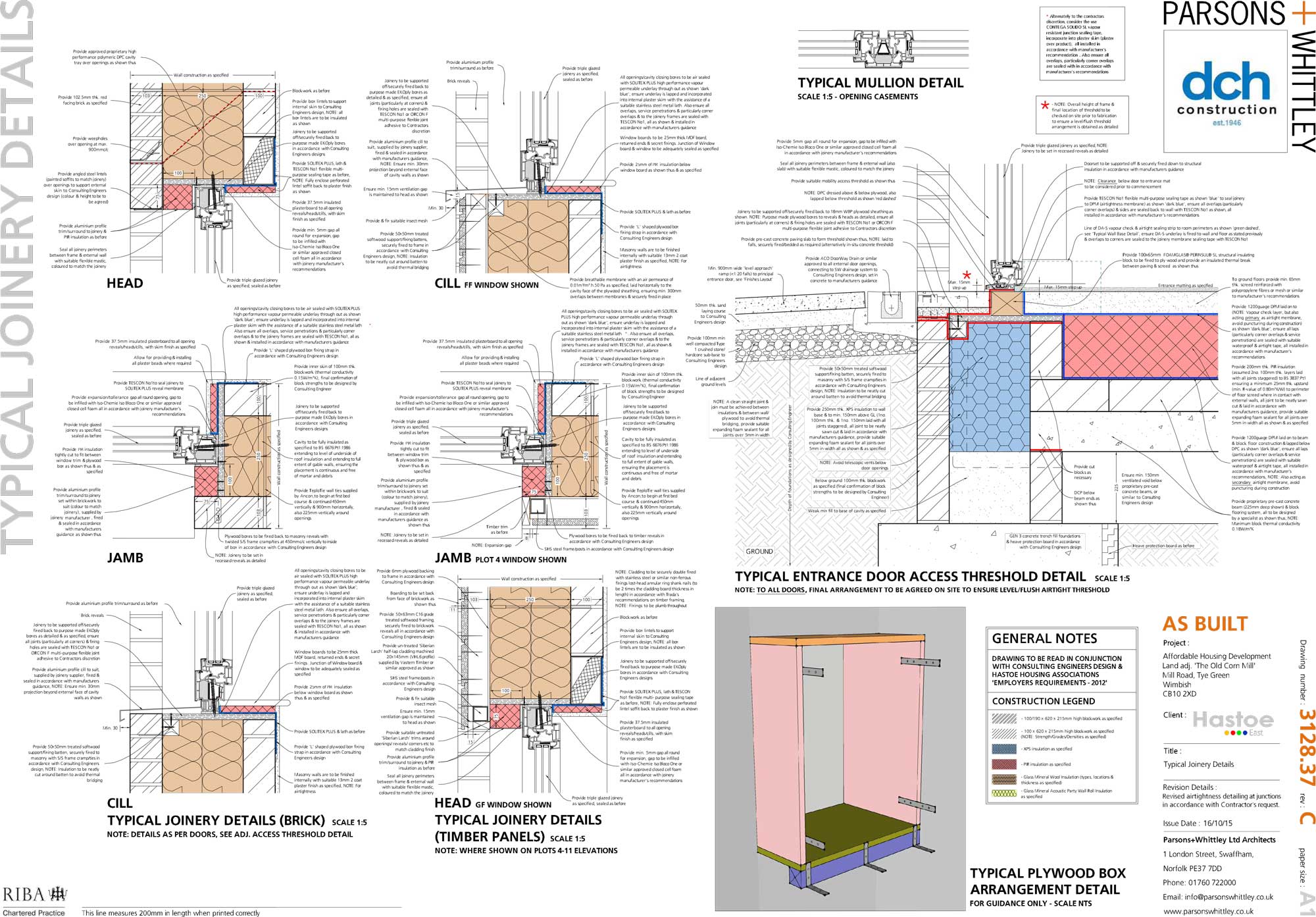 Thermal bridging: Low conductivity Thermalite aircrete blocks used for inner leaf above beam & block floor level; low conductivity Ytong aircrete blocks used within the beam & block floor construction; deeper precast beams to the ground floor to span full width of the dwelling (likewise first floor joists), to avoid internal foundations/ supporting walls and in turn further thermal bridges through the ground floor construction; low thermal conductivity (basalt) cavity wall ties; all wall insulation taken 215mm below the ground floor insulation and gables fully insulated; thermally broken window frames with plywood boxed cavity closers and highly insulated reveals/sills/head; Foamglas Perinsul structural insulating block to window sill; Y-value based on defaults (stated within PHPP & ACDs England)