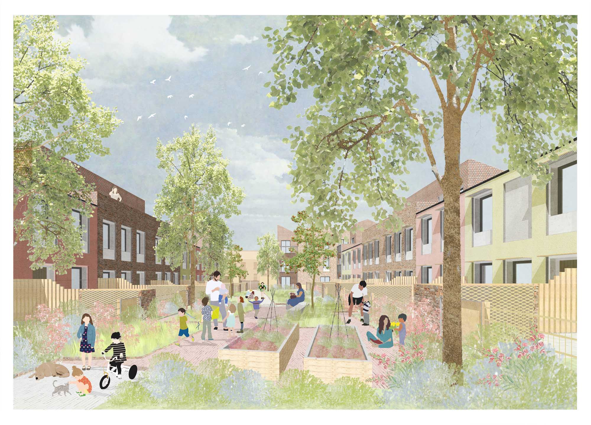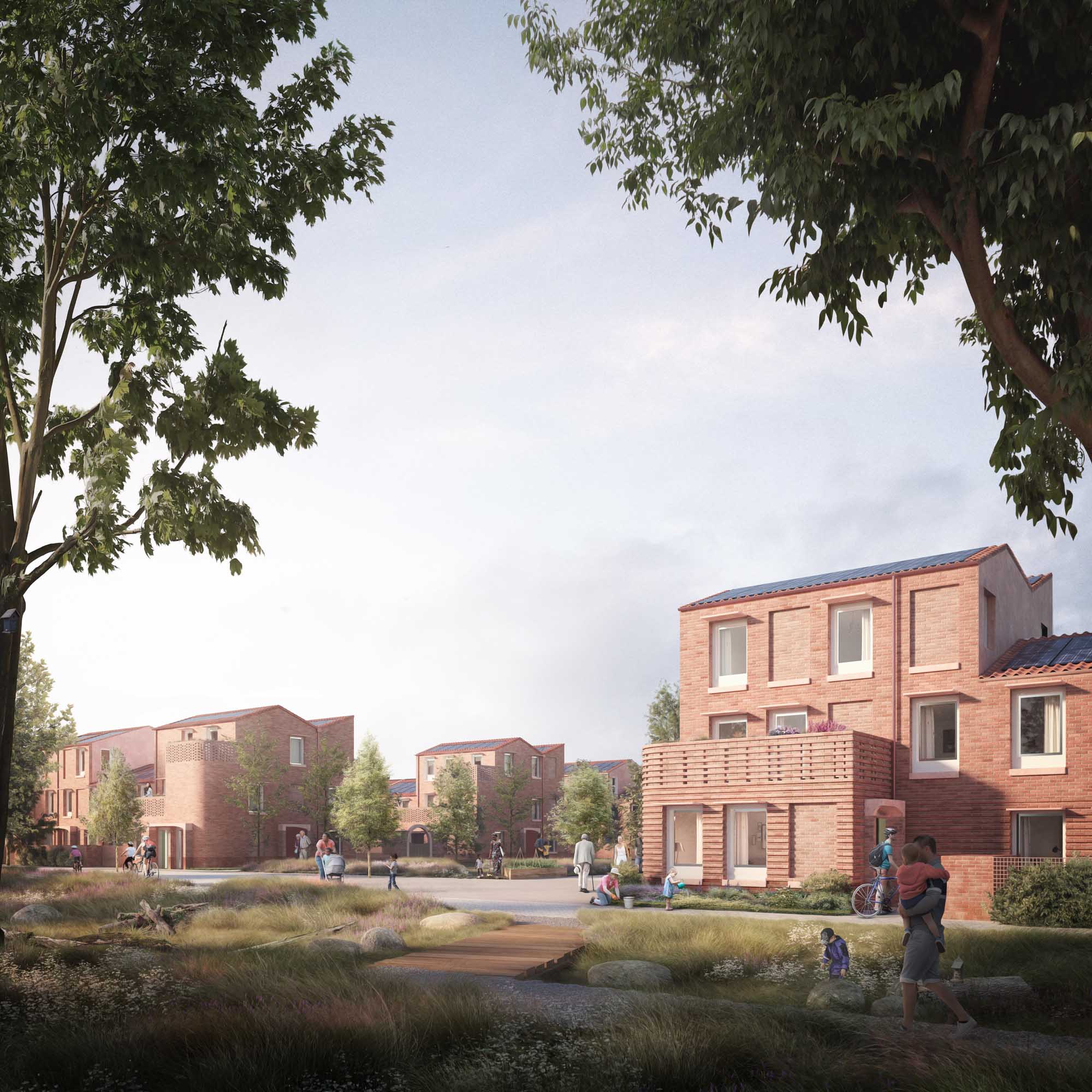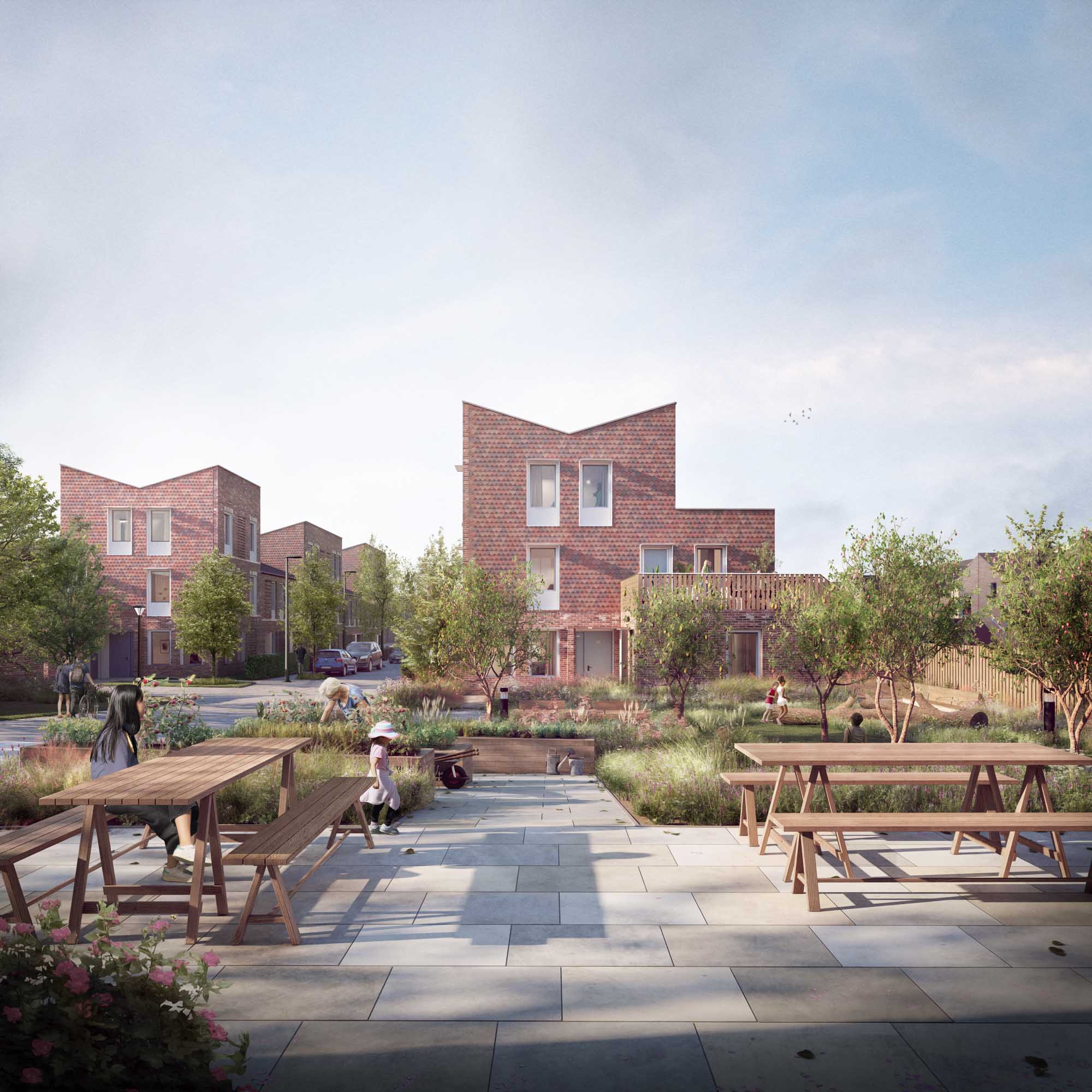 These radical developments are nothing less than a re-imagining of how society can best function in the 21st century. Everything has been done to make the mixed-tenure developments accessible to all social classes and age groups. Car use is discouraged; every home has a bike shed and private open space; green communal areas run between the homes and around the sides.