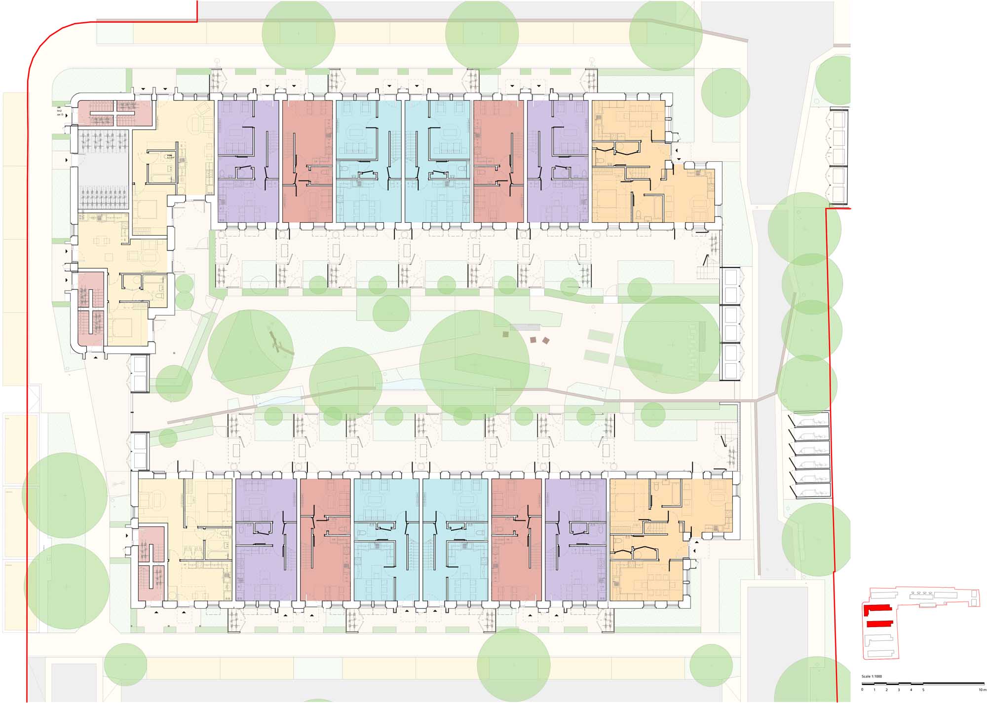 “Joseph Rowntree was a great inspiration. We directly borrowed from his ideas, such as planting trees for every home, designing homes so that they are filled with natural light and having front doors that open onto green spaces rather than roads. Like Rowntree, we have made the developments as inclusive as possible so people can live there regardless of job and income. Our goal is to tackle modern-day social ills, which are very different to what they were in 1902,” he says.