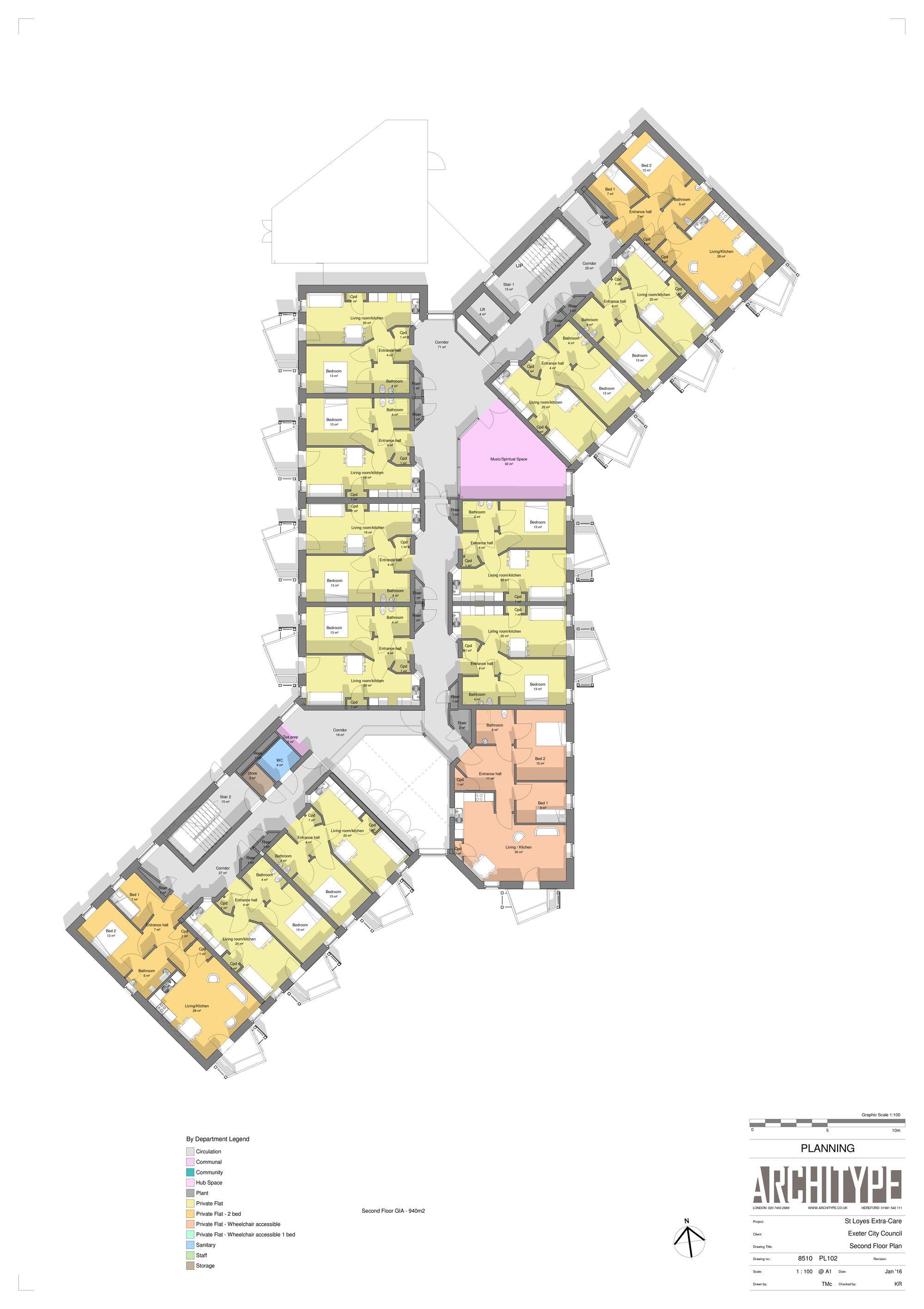 House type: 4,457 m2 care home (53 one and two-bed apartments)