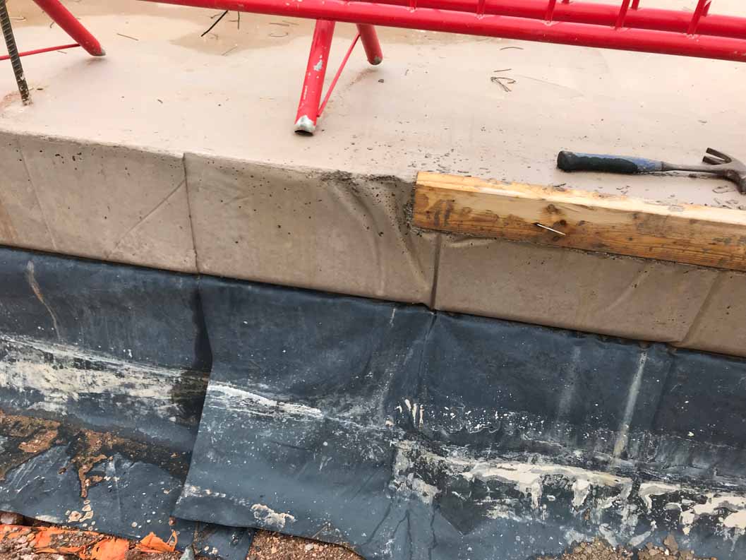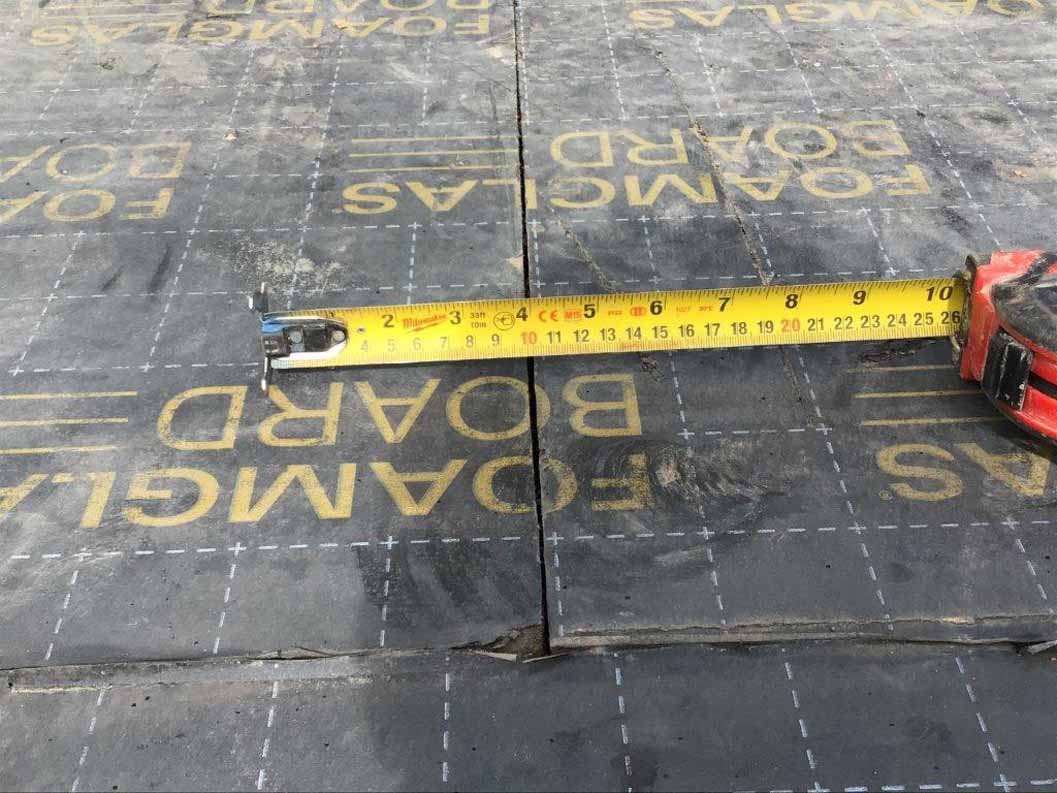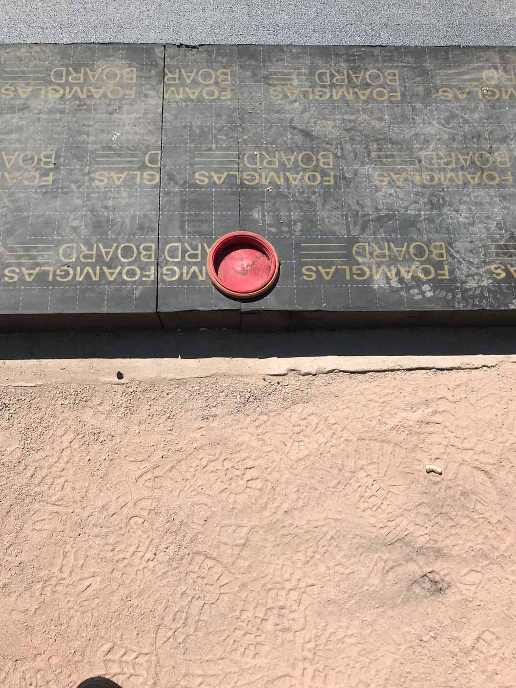 A dedicated mitre jig setup on site to cut EPS plinth insulation