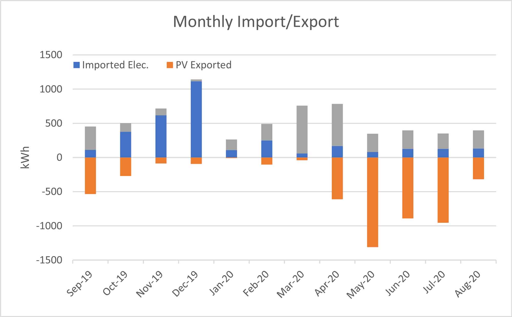 (above) Electricity imported and exported at Larch Corner over a 12 month period