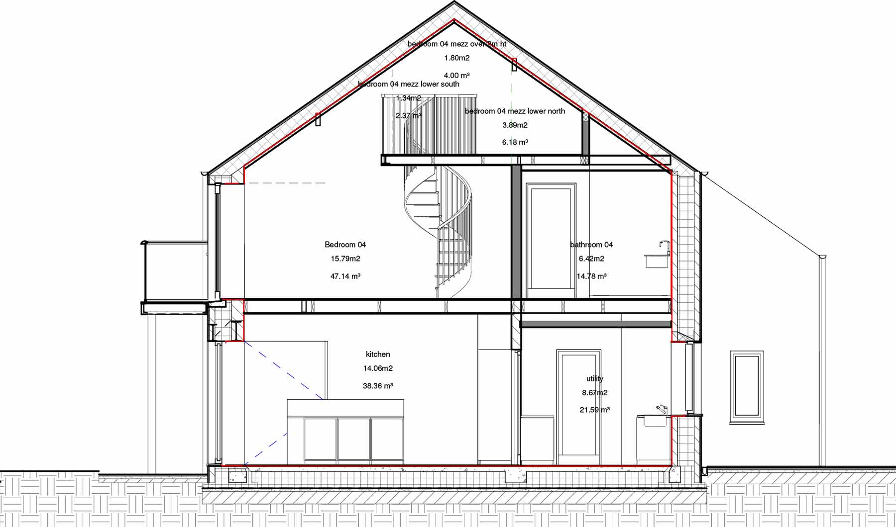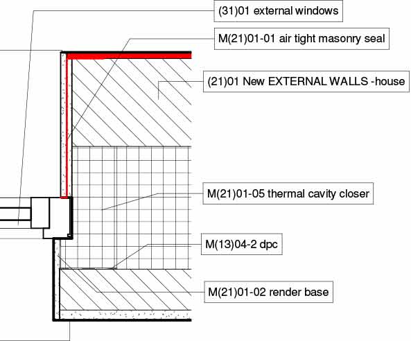 Thermal bridging: Proprietary Supergrund (now Kingspan) insulated passive foundation / floor system to form ground floor slab & foundations, proprietary TeploTie low thermal conductivity cavity wall ties, thermally broken window frames, insulated rigid insulation cavity closers to all reveals. Y-value: 0.08 W/mK (based on ACDs and numerical simulations)
