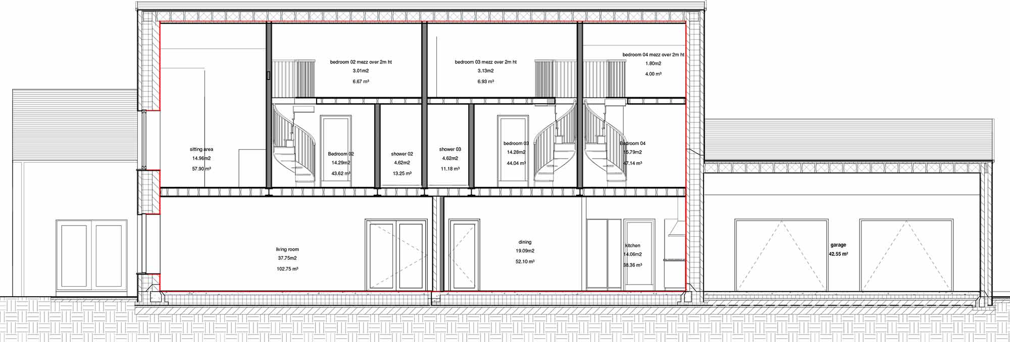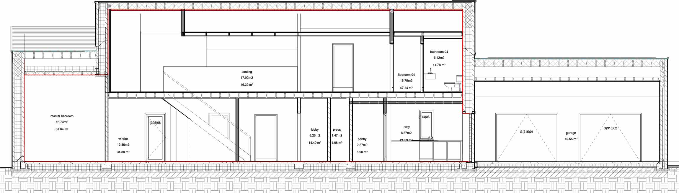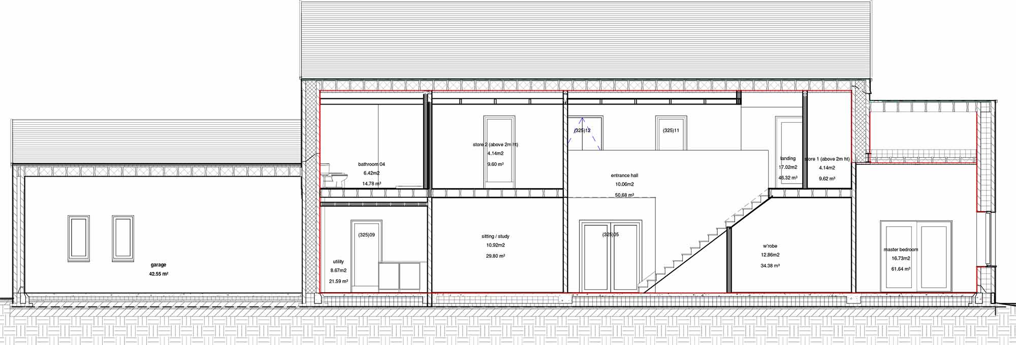 Building type: Detached 272 sqm cavity wall house with 42 sqm integrated double garage within thermal envelope