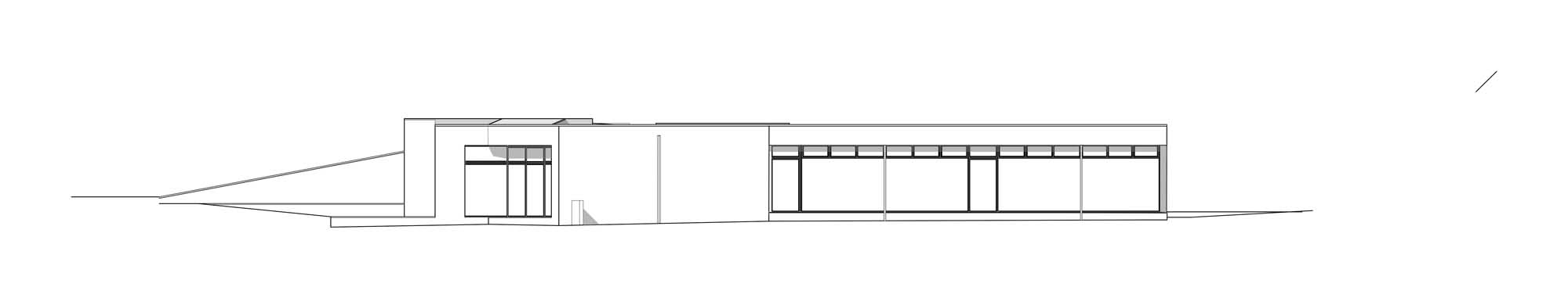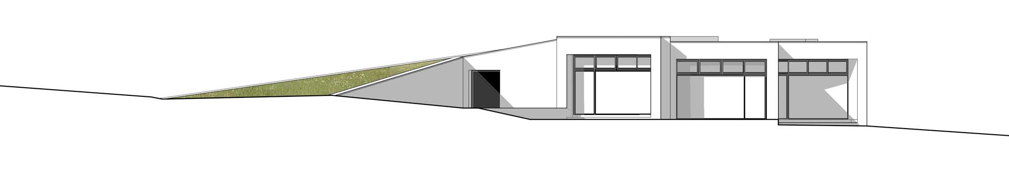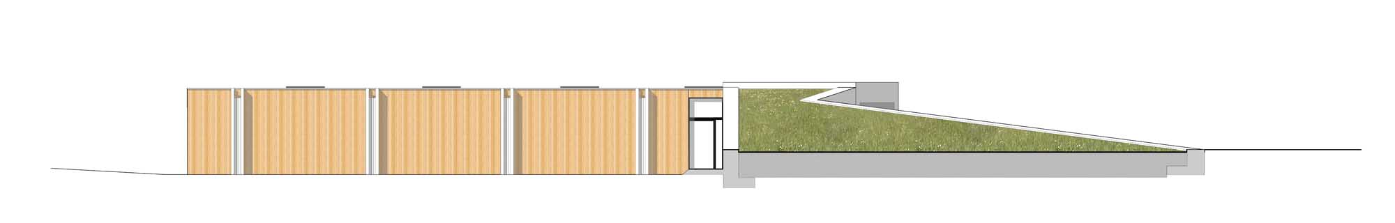Although it’s a much larger building, it’s easy to see the influences on this site-specific Bandon project, such as the way the entrance cuts down into its steeply sloping landscape, but also the idea of mounting the earth onto a retaining wall at the entrance to this building, which is topped by a green roof. “So, it creates a very dramatic approach to our building where you’re walking down the slope,” said McNally.