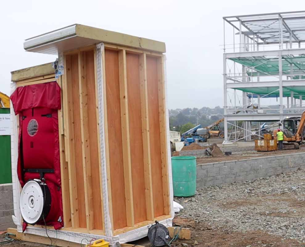 Airtightness tests were conducted on a mock-up of the roof system to catch and address leakage issues