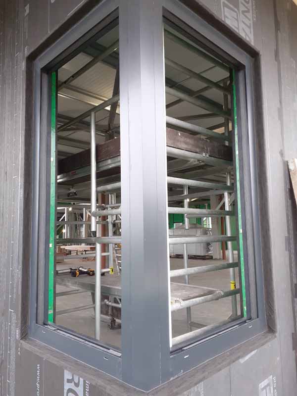 Fenestration: Passive House Institute certified windows, curtain walling and external doors. Aluminium thermally broken frames with argon-filled triple glazing. Whole-window and curtain walling U-value installed: 0.63-0.90 W/ m2K, depending on orientation. Average U-value installed: 0.71 W/m2K.