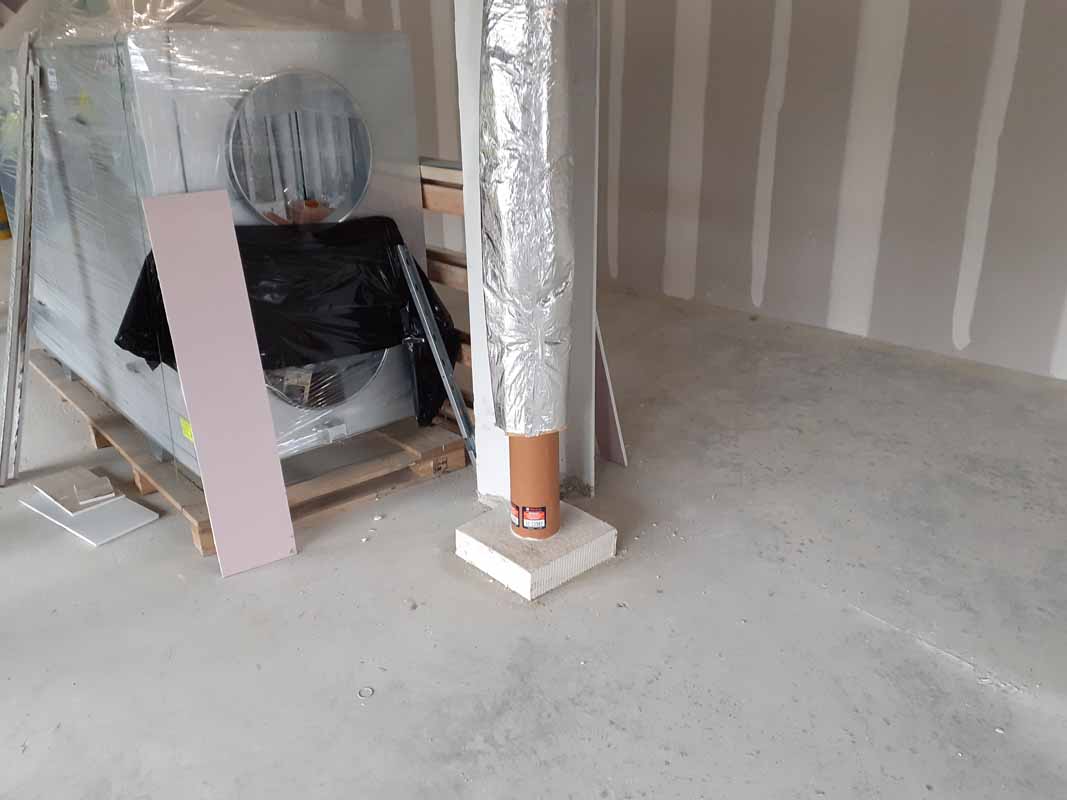 Precaution was taken to wrap rainwater down pipes with foil-backed insulation from roof to ground floor;