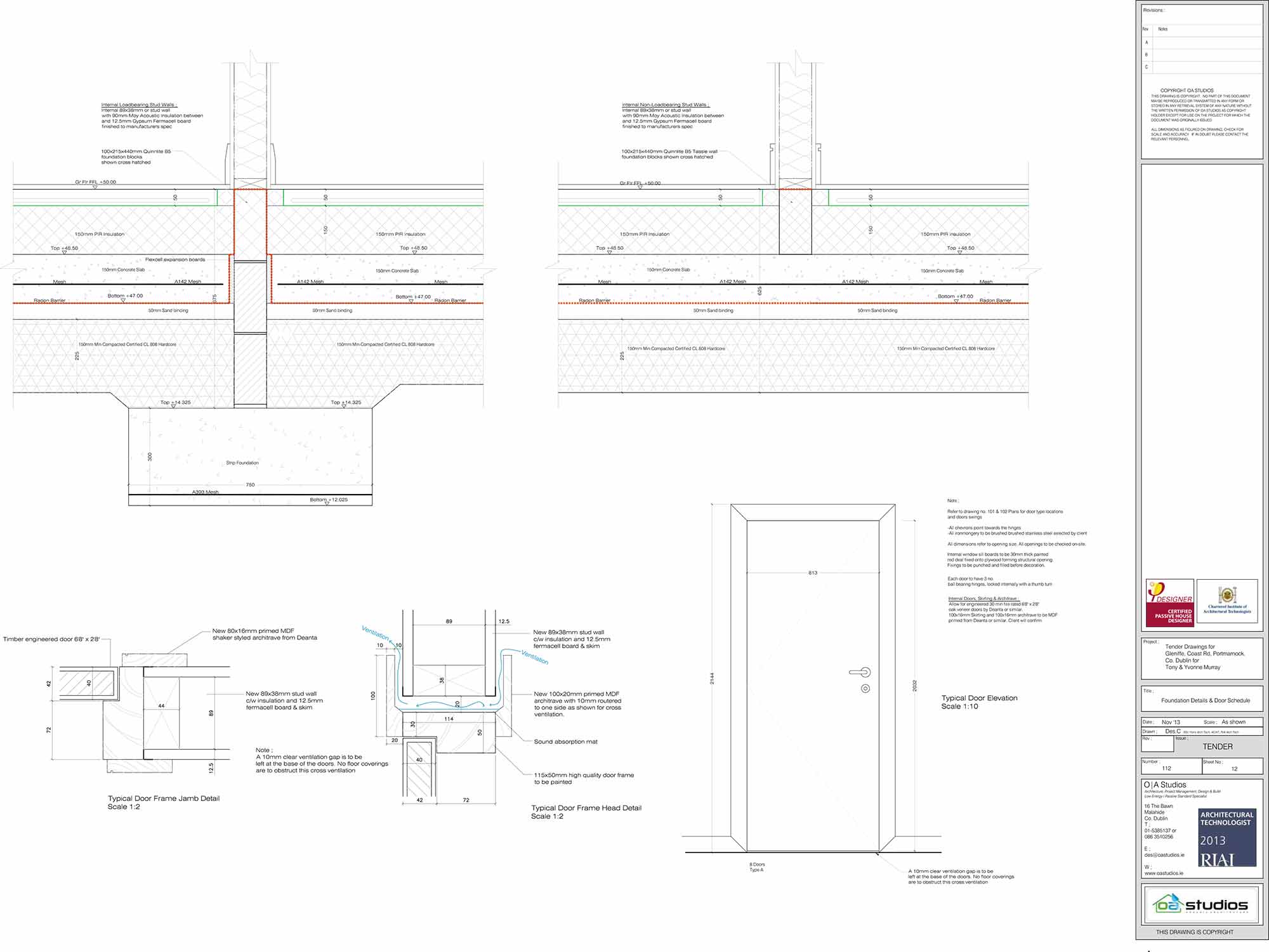 Ground floor: Strip foundation insulated with 150mm Xtratherm PIR insulation. U-value: 0.155 W/m2K