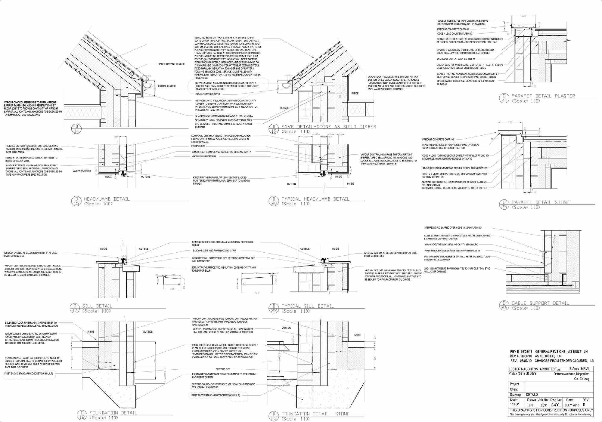 blockwork was kept back and 50mm of PIR board was returned across the cavity. Internally insulated plasterboard was returned into the windows so as to overlap the window frames and reduce thermal bridging as much as possible. Thermal bridges were not calculated but judged to be thermal bridge free (at least as relevant to PHPP calculation methods). For the purposes of DEAP the details were assessed as being equivalent or better than the Irish accredited construction details. Ground floor: 100mm screed on 350mm PIR insulation on existing structural slab. U-value 0.06W/m2K (0.080 W/m2K when not adjusted for ground effect).