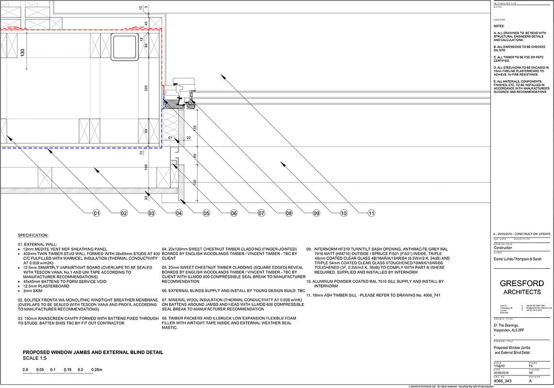 Proposed window jambs and external blind detail