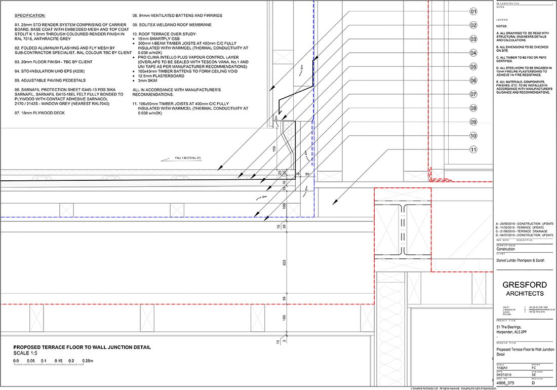 Proposed terrace floor to wall junction detail