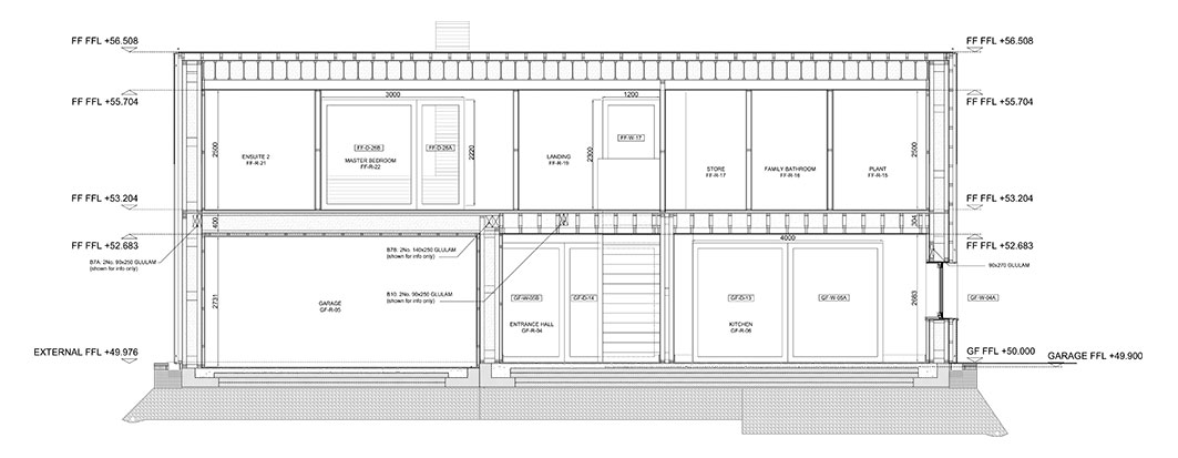 Building type: Detached 5-bedroom timber frame house. Gross internal area 400 sqm.