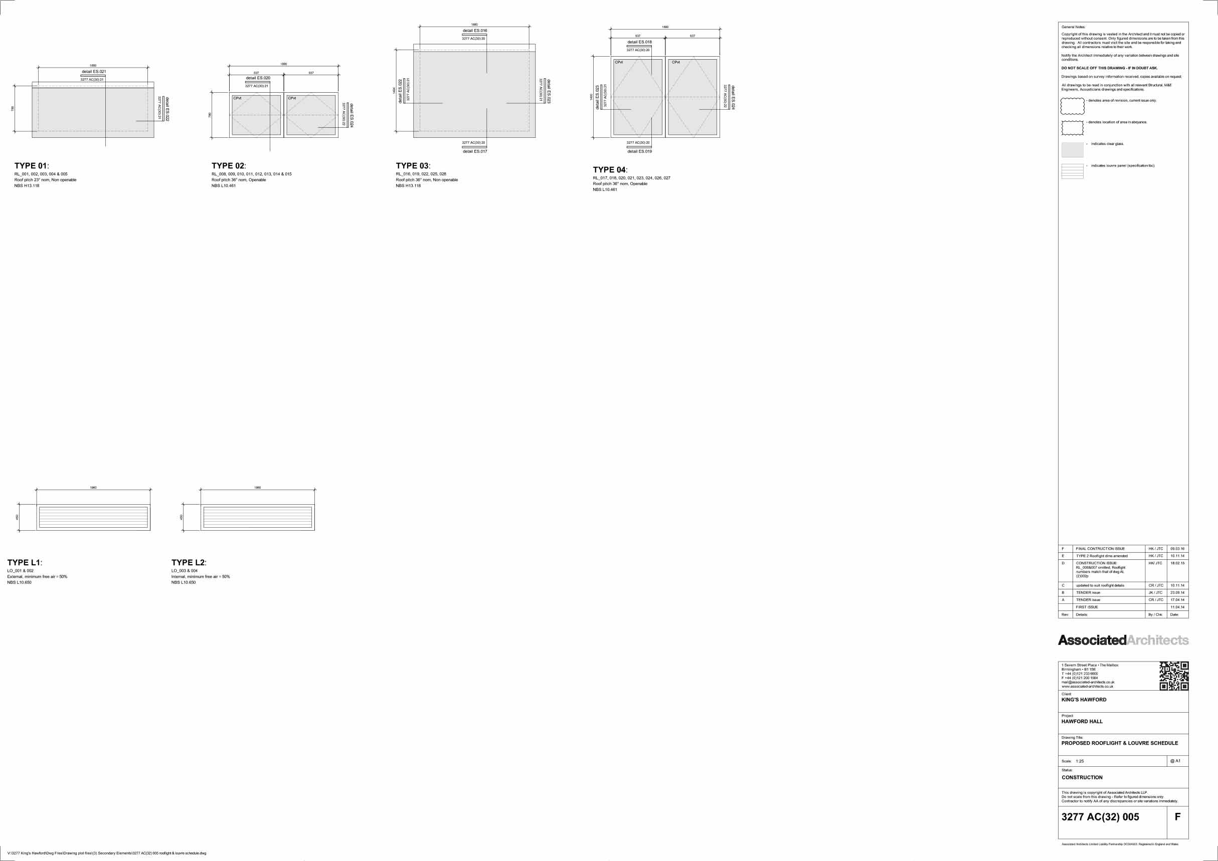 Glassolutions fixed rooflights structurally glazed with galvanized steel profiles, aluminium cover flashings, 50.8mm triple glazed units SGG Coolite SKN154, 8.8mm SGG STADIP clear laminated glass externally, followed inside by 16mm argon cavity, 4mm SGG SECURIT clear toughened glass, 16mm argon cavity, 6mm SGG SECURIT toughened glass outer. Glazing U-value (centre pane): 0.53 W/m2K