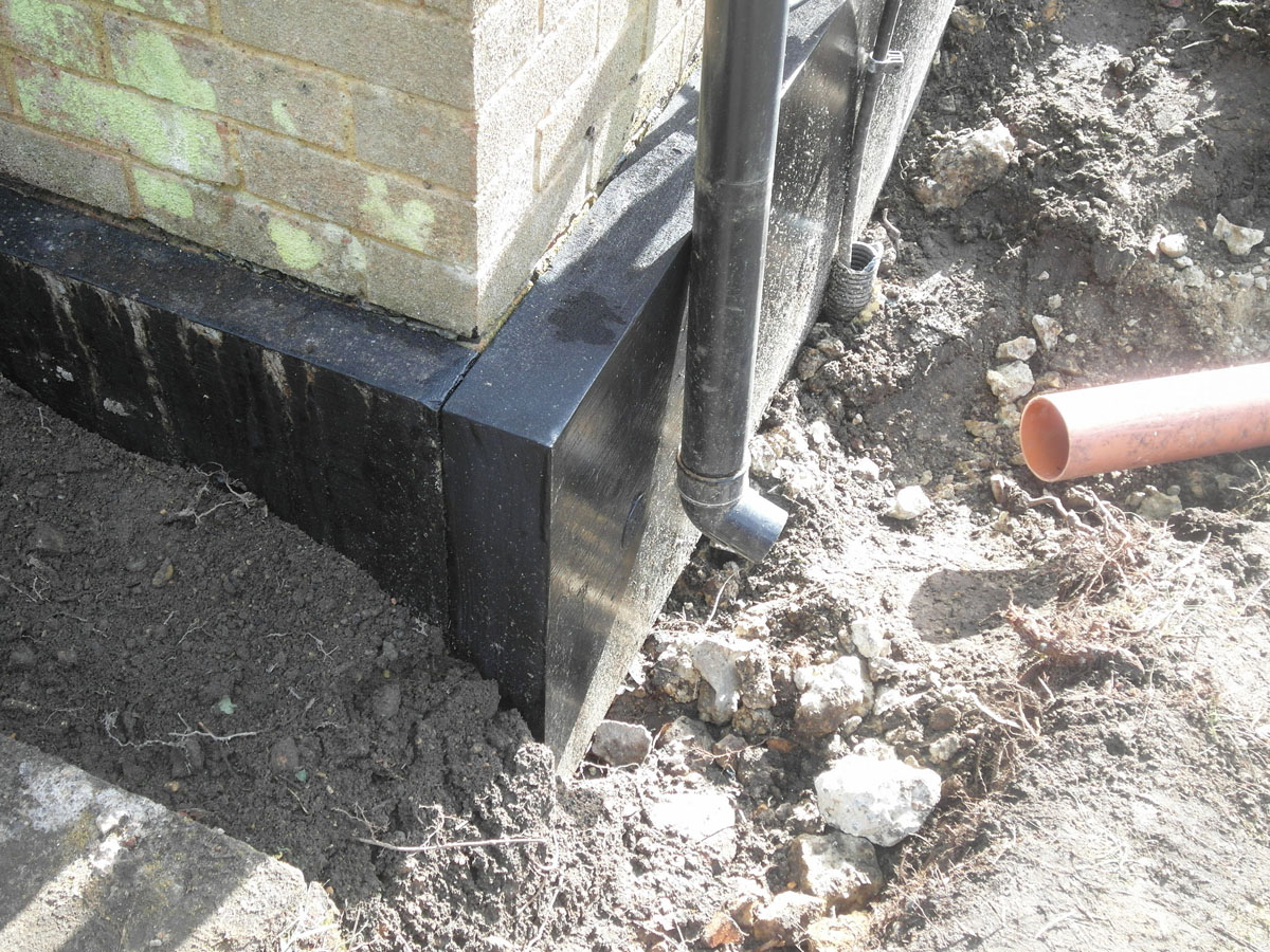 Walls below DPC level insulated with 100mm extruded polystyrene and painted with bitumen, to reduce cold bridge at floor perimeter and compensate for relatively poor floor U-values. At eaves junction internally an insulated cornice formed to reduce thermal bridge.