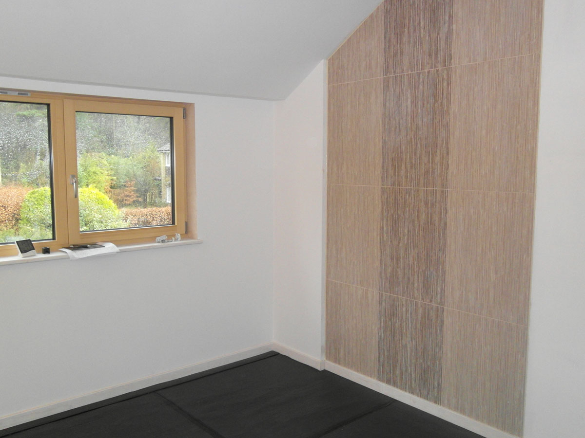 After: Wood stove with direct external air feed. Electric wall mats and underfloor mat covered with ceramic tiles fed by solar PV. Direct electric hot water cylinder with efficient heat exchanger, and two immersion heaters, one connected to grid and one connected to the Immersun controller to prioritise solar PV to hot water and heating before exporting any surplus.
