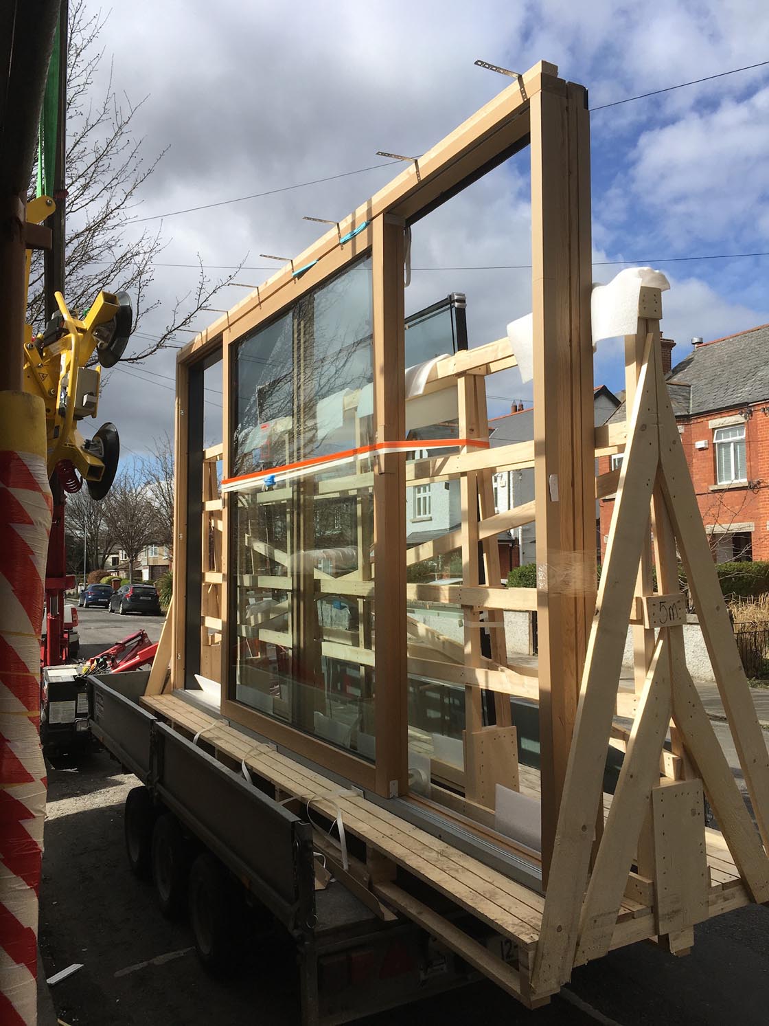 Delivery of the large glass patio door with pre-fitted brackets for the new rear extension